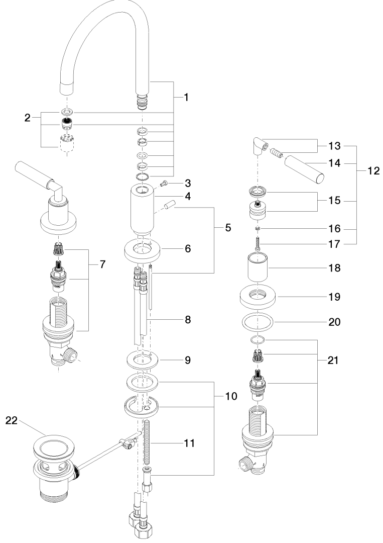 TARA 3-gats Wastafmgkrn afvoer cham (22kt Goud) 20713882-47 Dornbracht