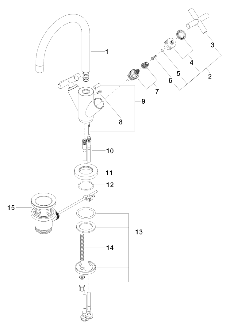 • Opbouwhoogte onderkant kraanmondstuk: 172 mm