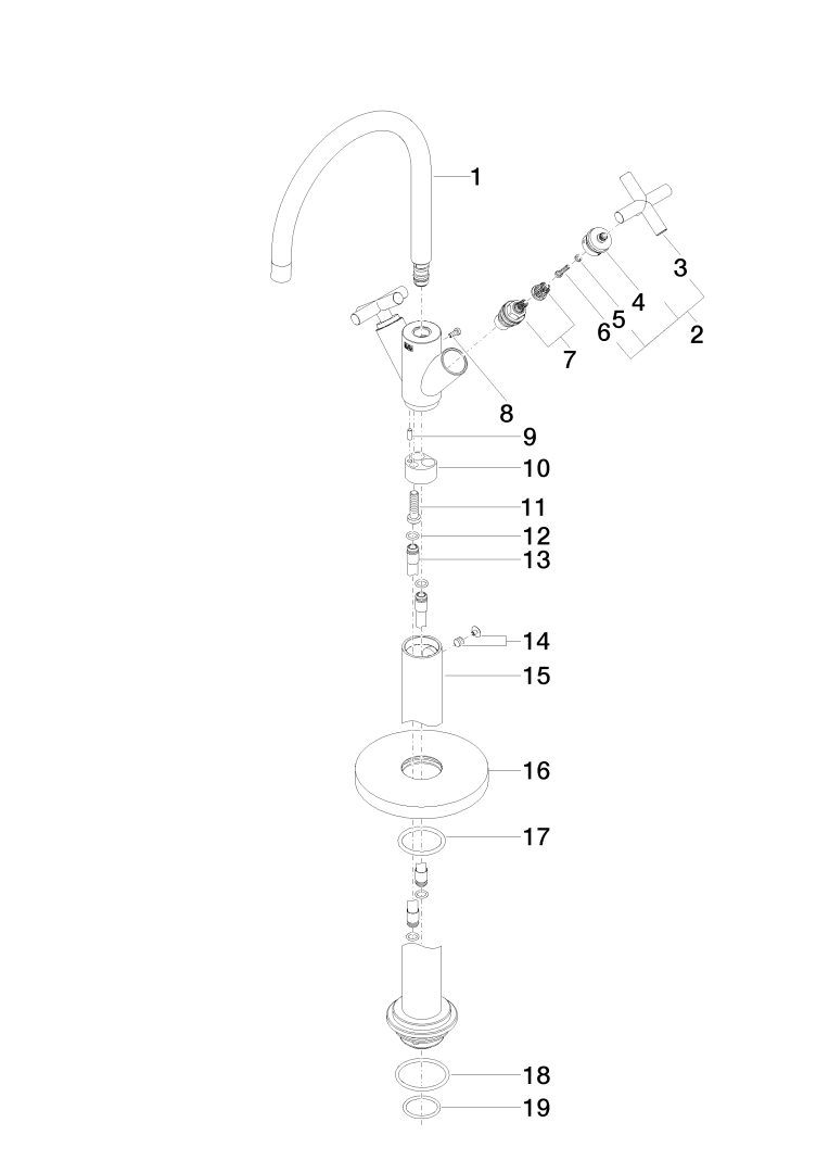 • TARA 1-gats wastafelmgkrn standpijp z.afvoer. chr Dornbracht
