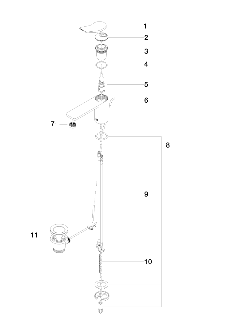 - Type afvoeraansluiting: Pop-up plug met verticale hefboom