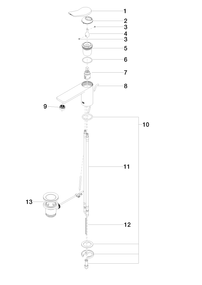 - Type afvoeraansluiting: Pop-up plug met verticale hefboom