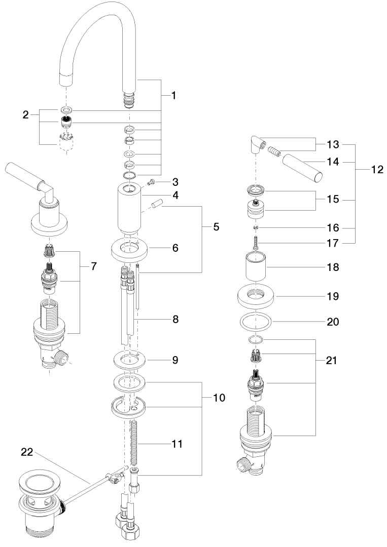 TARA 3-gats wastafelmgkrn afvoer. Dark Chrome 20710882-19 Dornbracht