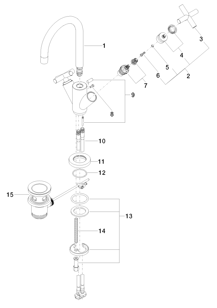 • Opbouwhoogte onderkant kraanmondstuk: 168 mm