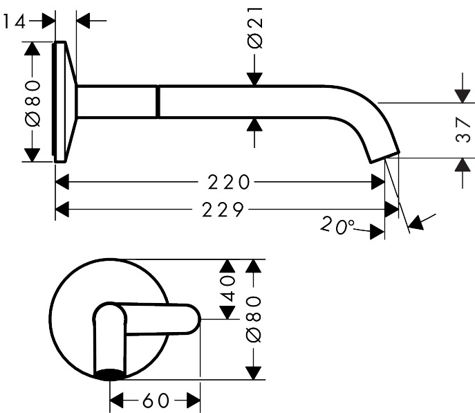 • Opbouwhoogte totaal: 80 mm