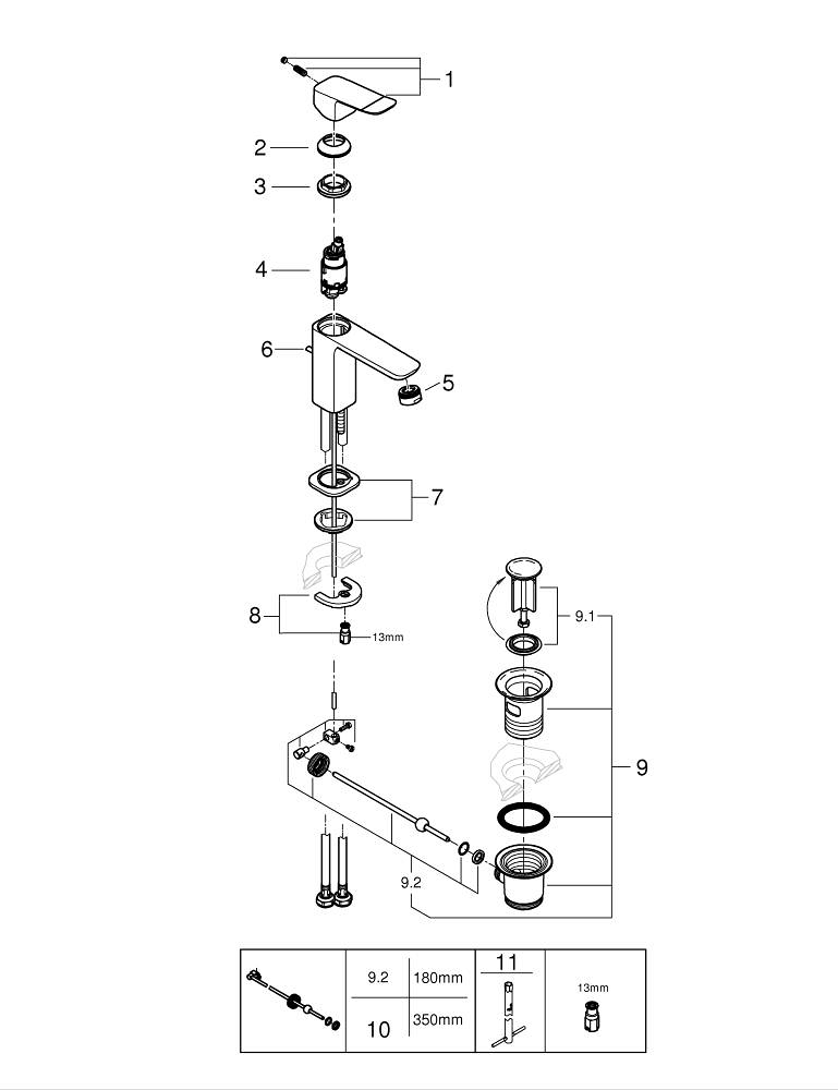 - Opbouwhoogte onderkant kraanmondstuk: 86 mm
