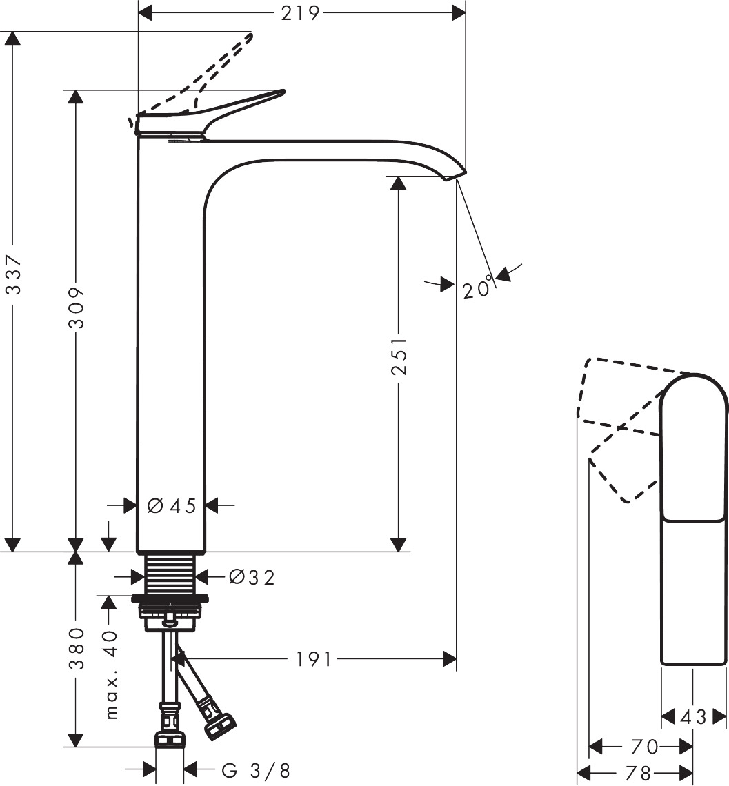 Viven.wtmk 250 CoolS.z waste High. mat wit hansgrohe