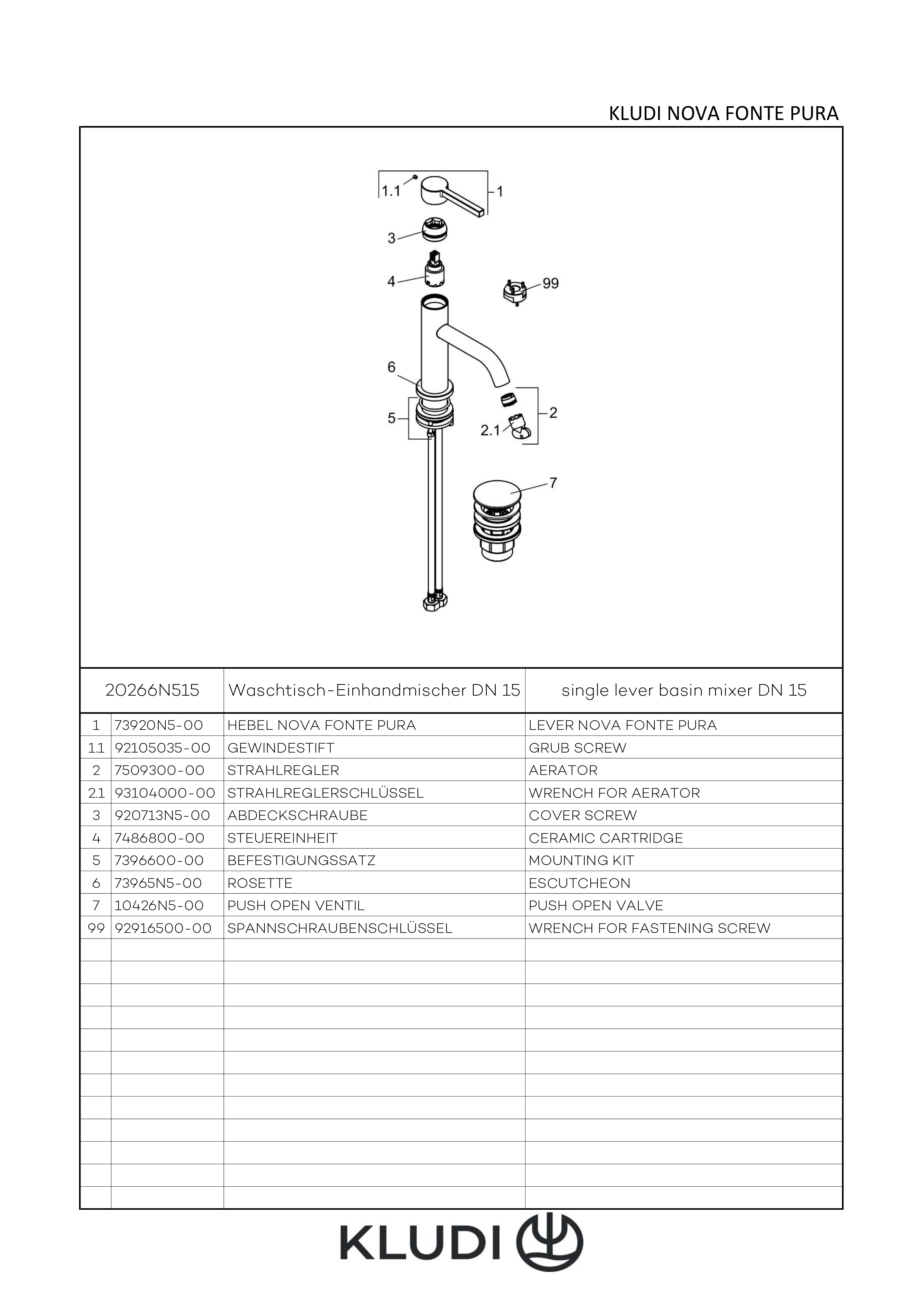 - Serie: KLUDI NOVA FONTE