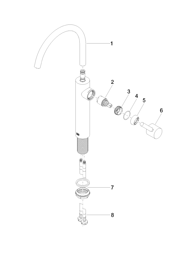 Eengreeps wastafelmengkraan META+hoog standpijp z. afgar. DB Dornbracht