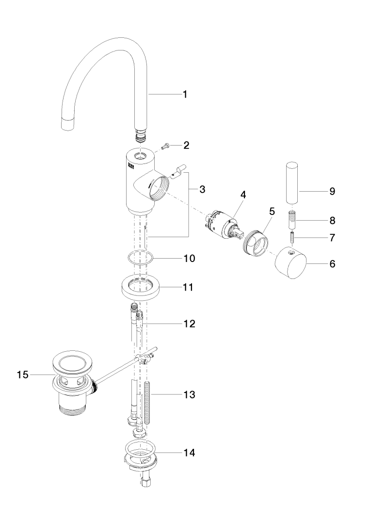 Eengreeps wastafelmengkraan TARA+afgar. DB geb Dornbracht