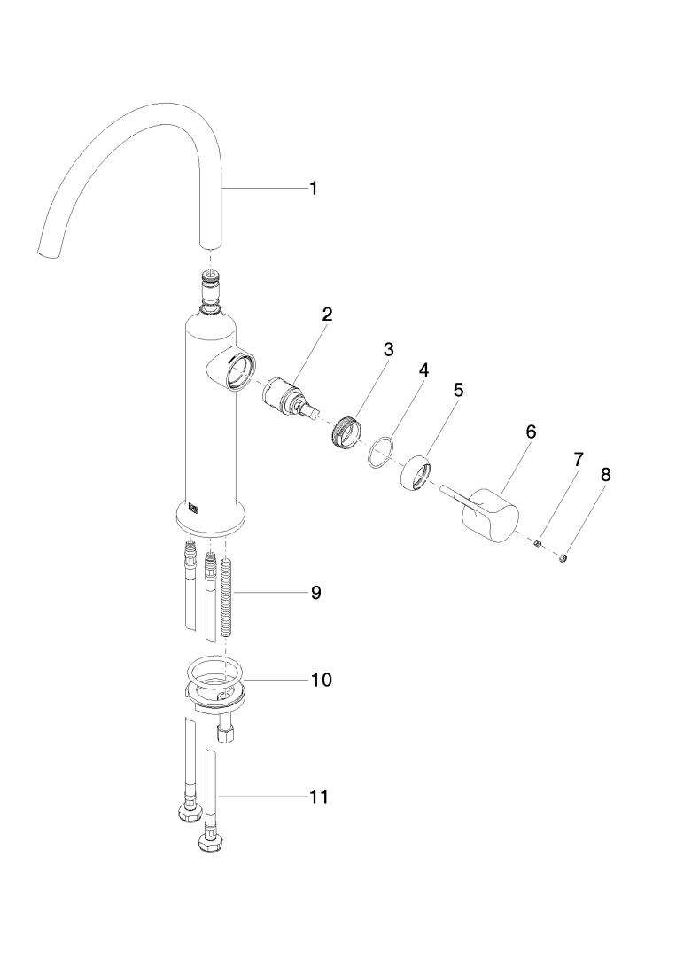 Eengreeps wastafelmengkraan VAIA+hoog standpijp z. afgar. DB Dornbracht