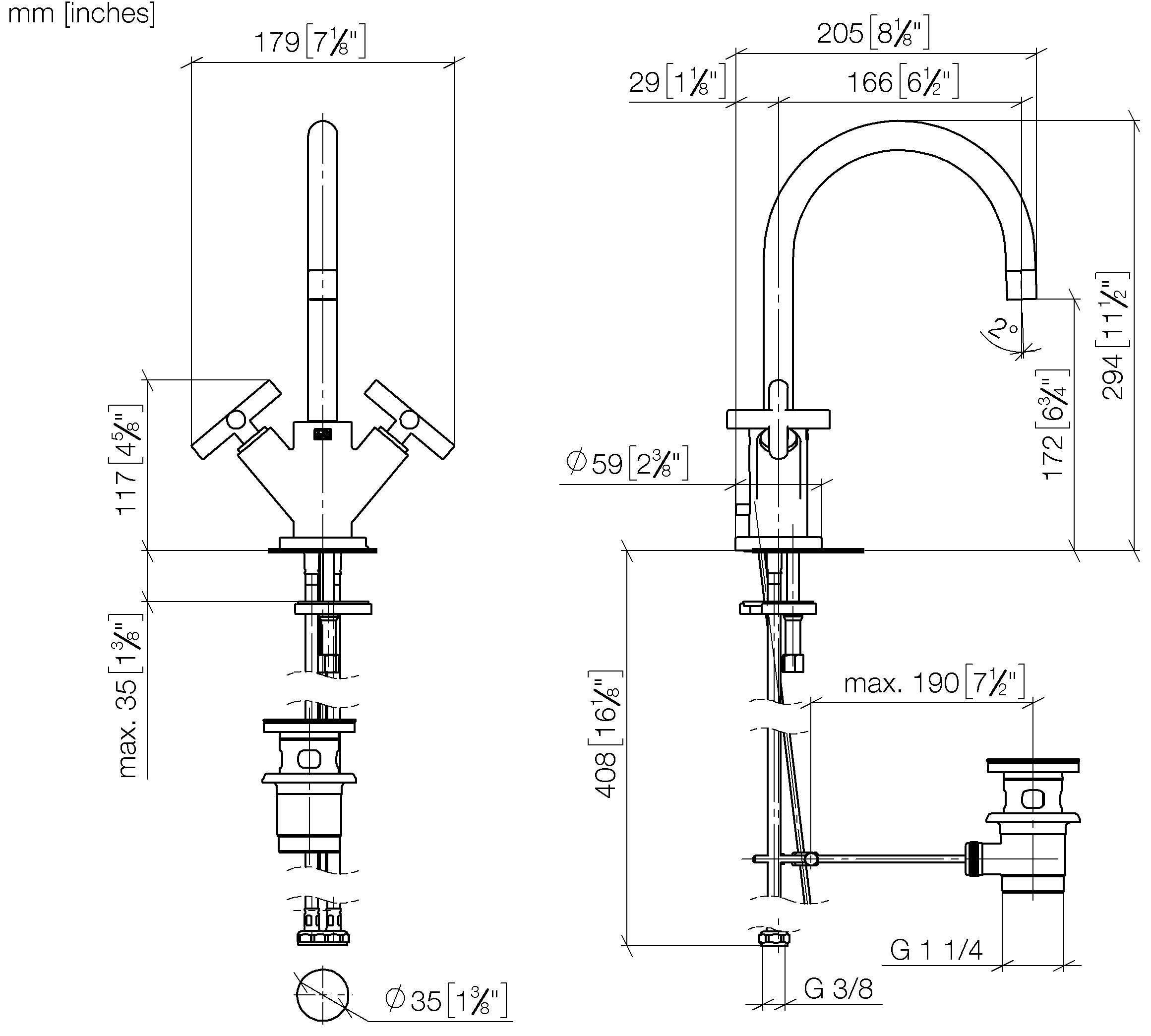 - Opbouwhoogte onderkant kraanmondstuk: 172 mm