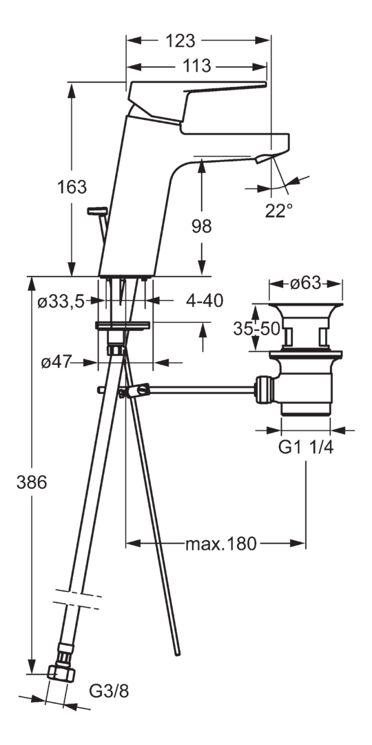 • Type afvoeraansluiting: Pop-up plug met verticale hefboom