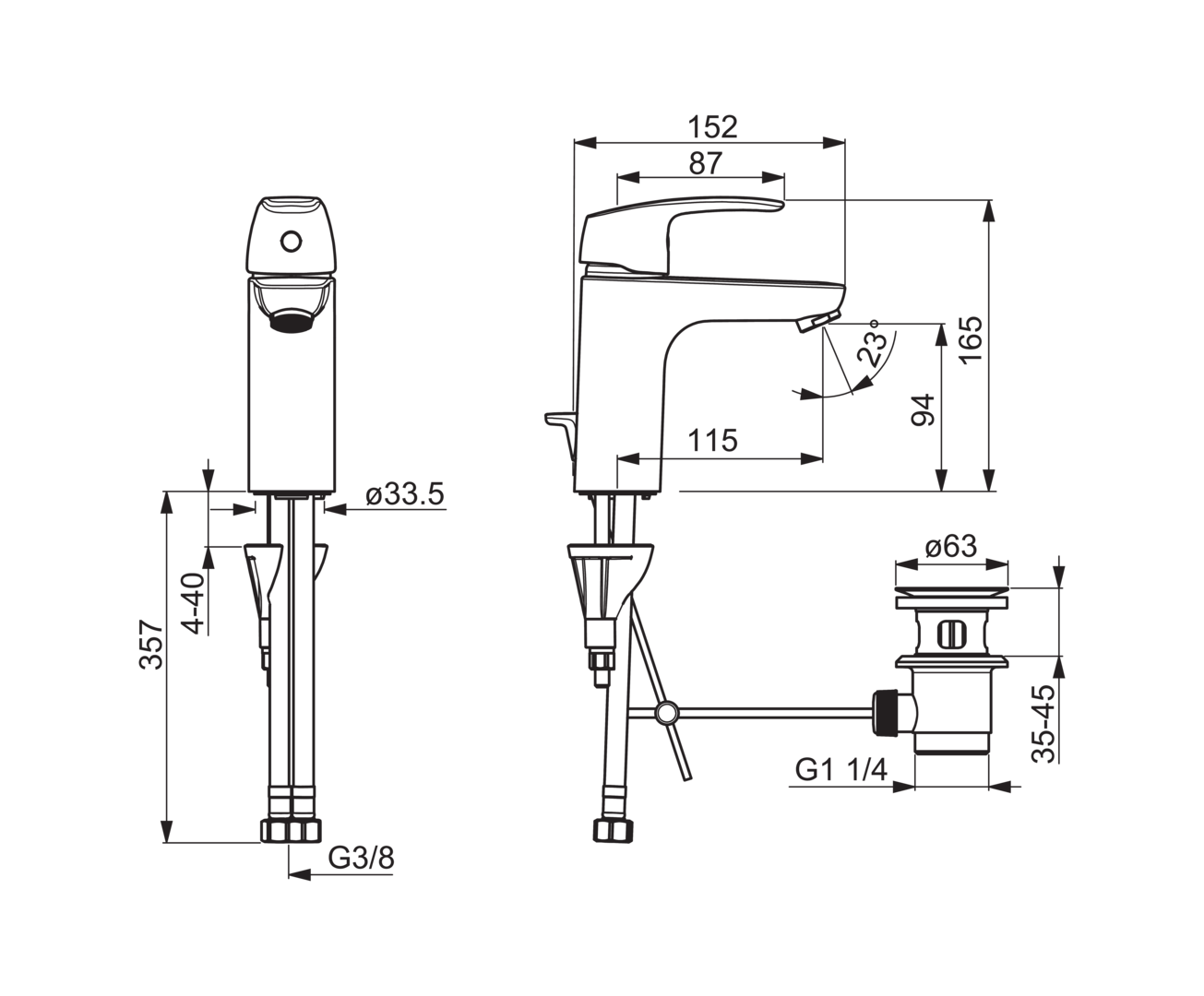 - Type afvoeraansluiting: Pop-up plug met verticale hefboom