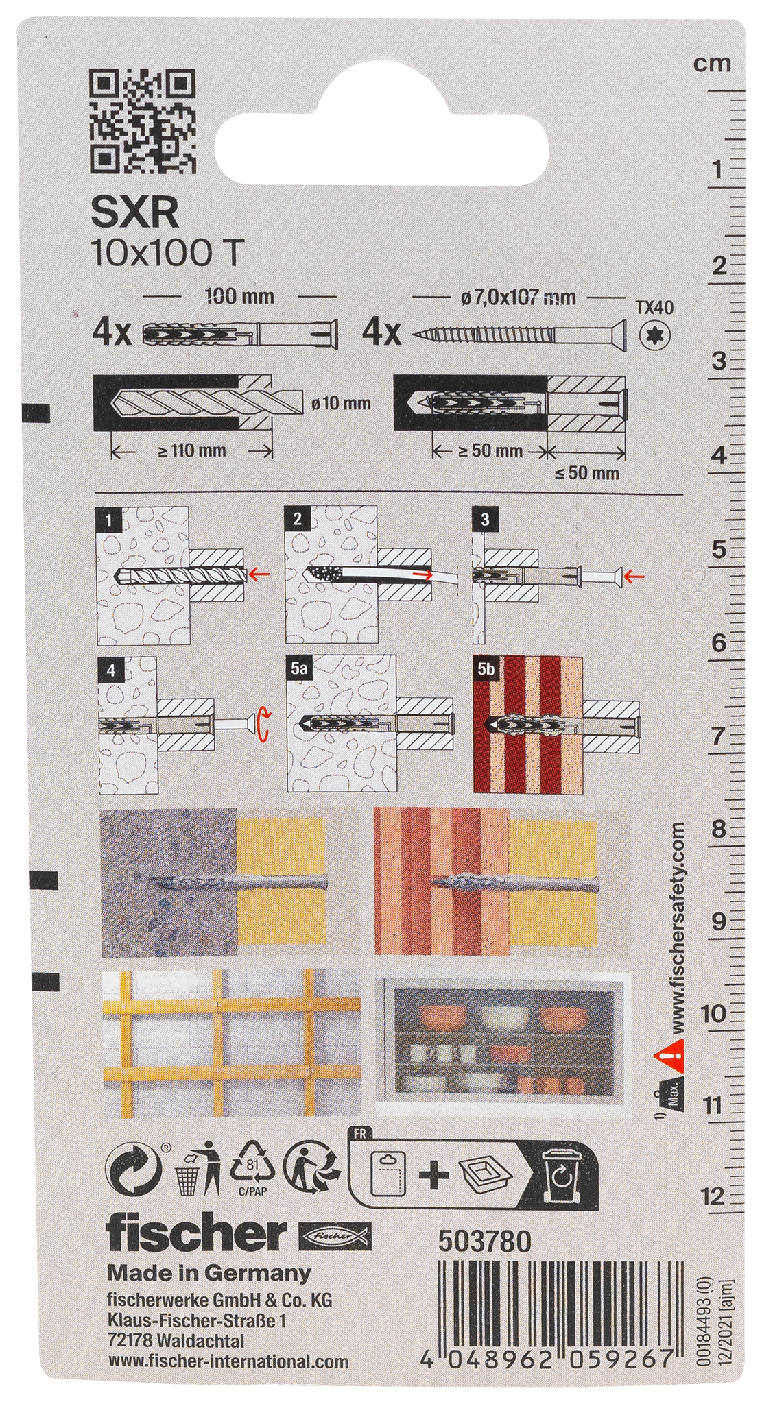 Set a 4st. constructieplug SXR 10x100mm T kop Fischer