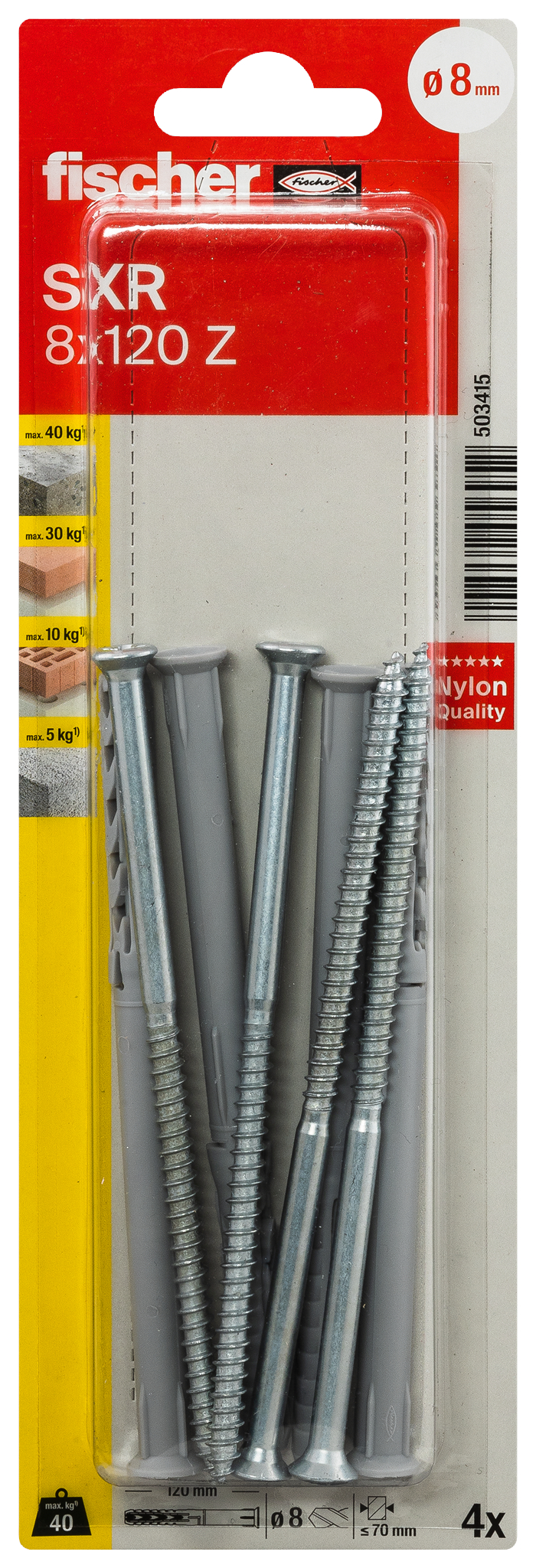 Set a 4st. constructieplug SXR 8x120mm zonder kop Fischer