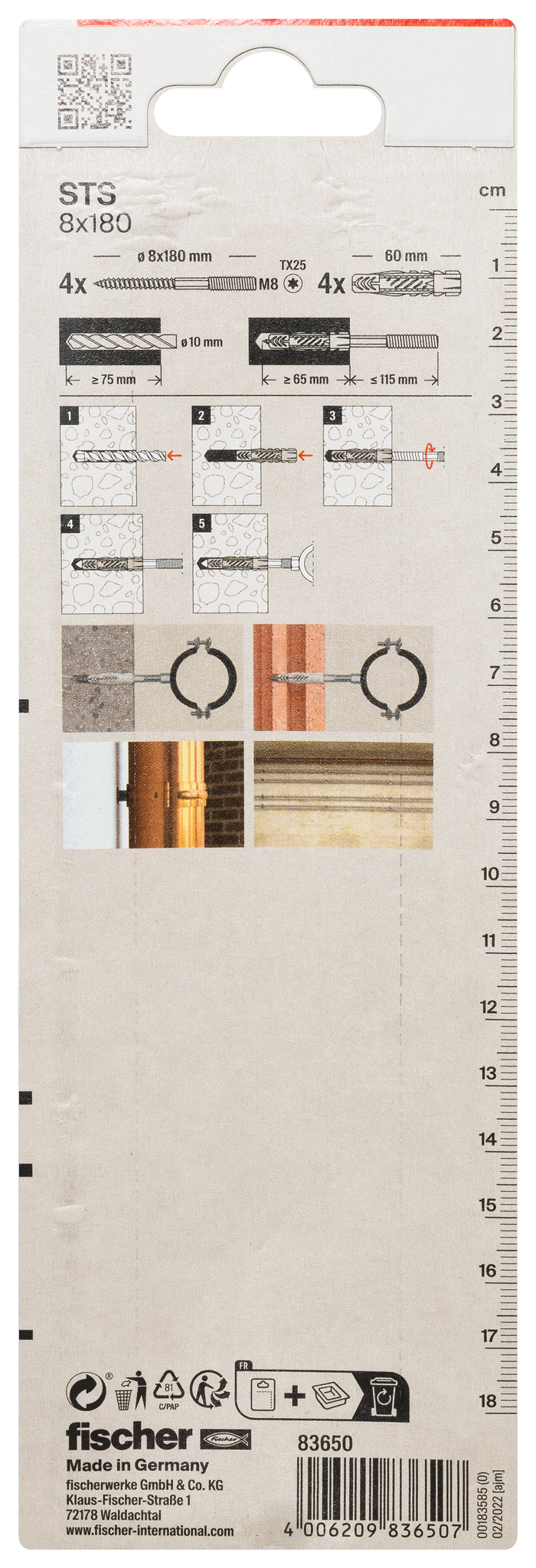 - Type: FISCHER STS 8X180 + UX K STOKSCHROE