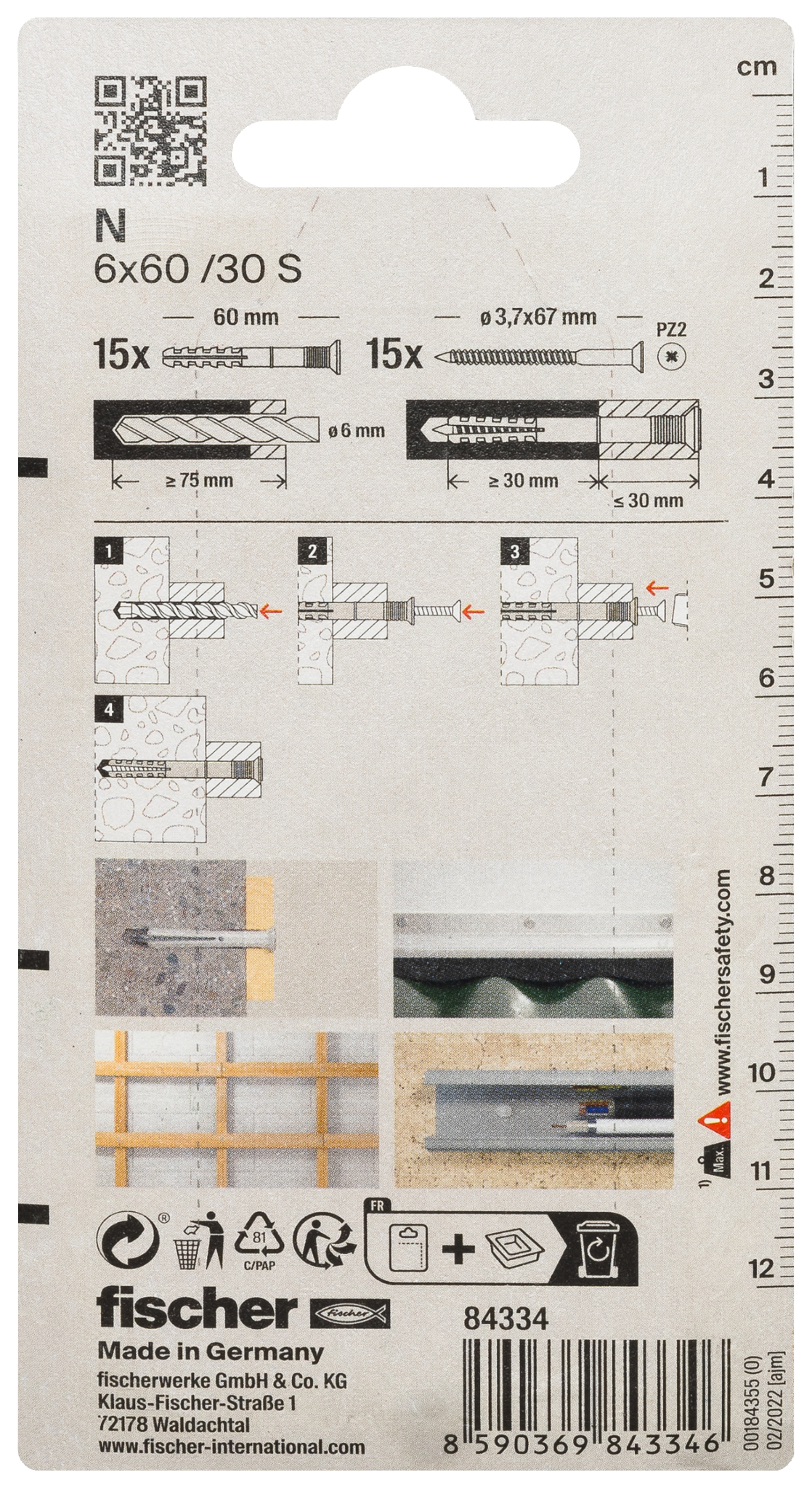 Set a 15st. nagelpluggen N 6x60/30 S met kop Fischer