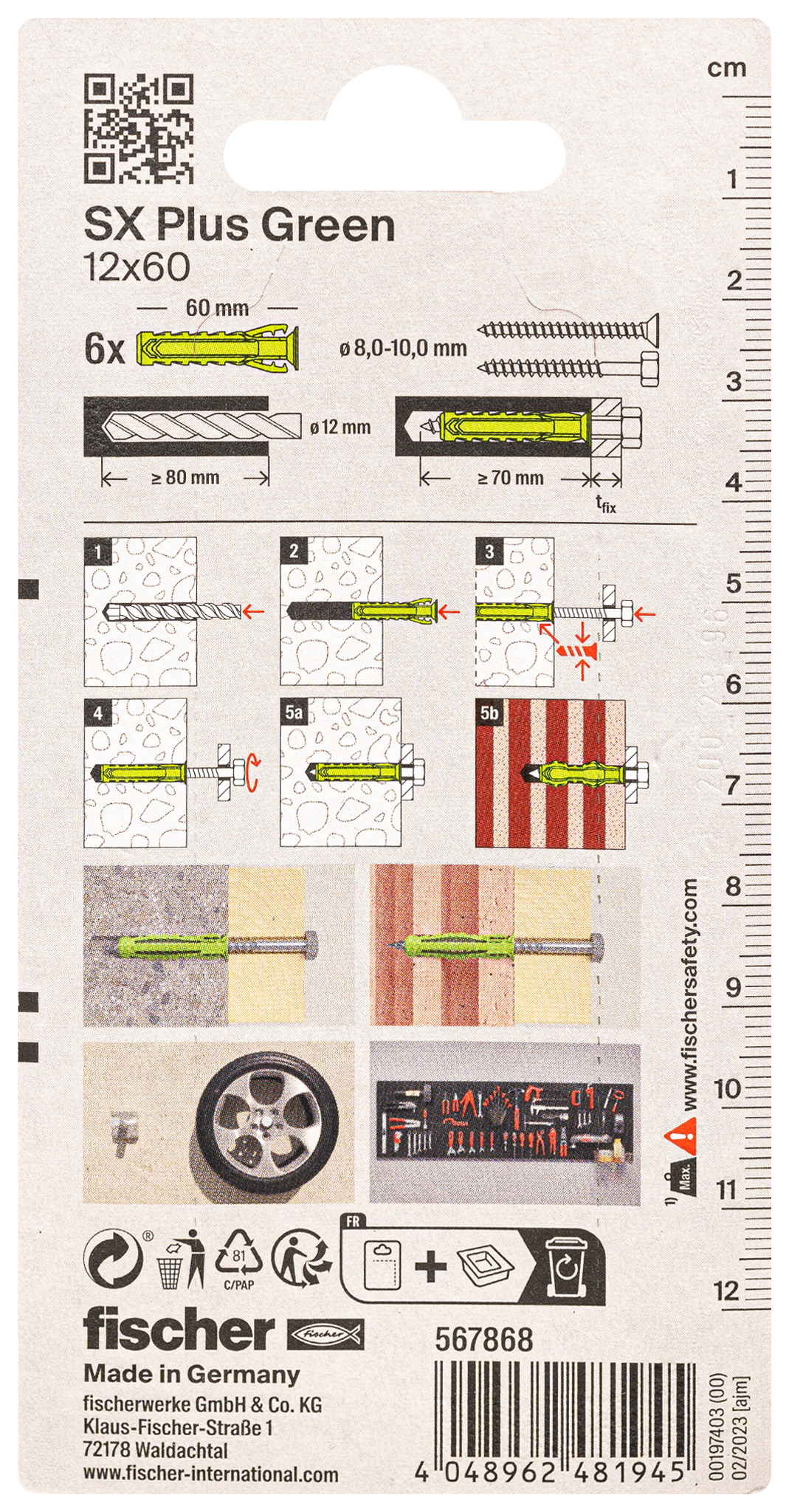 Set a 6 pluggen SX Plus green 12x60 Fischer