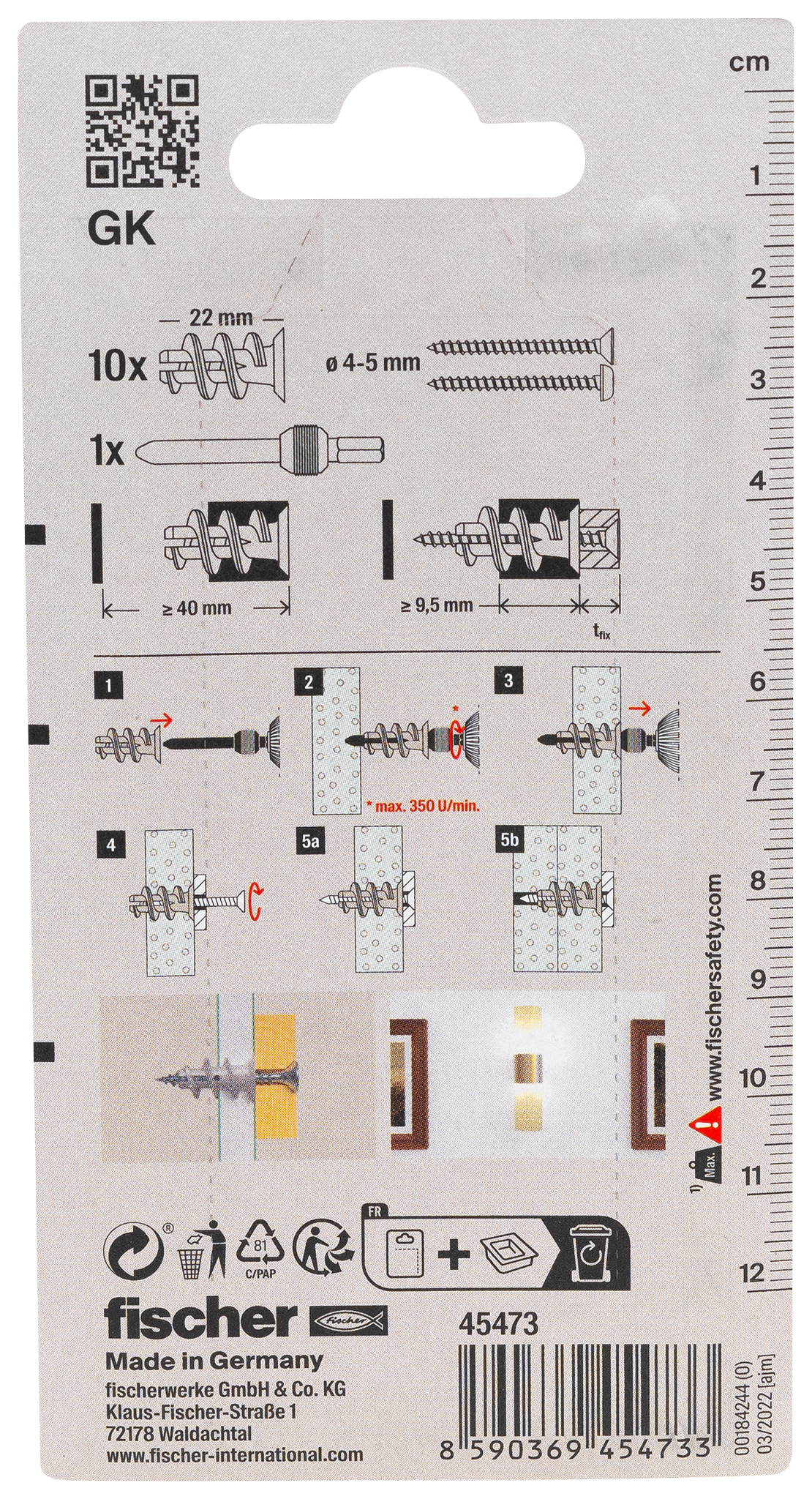 Set a 10 gipsplaatpluggen GK incl. montagehulpstuk Fischer