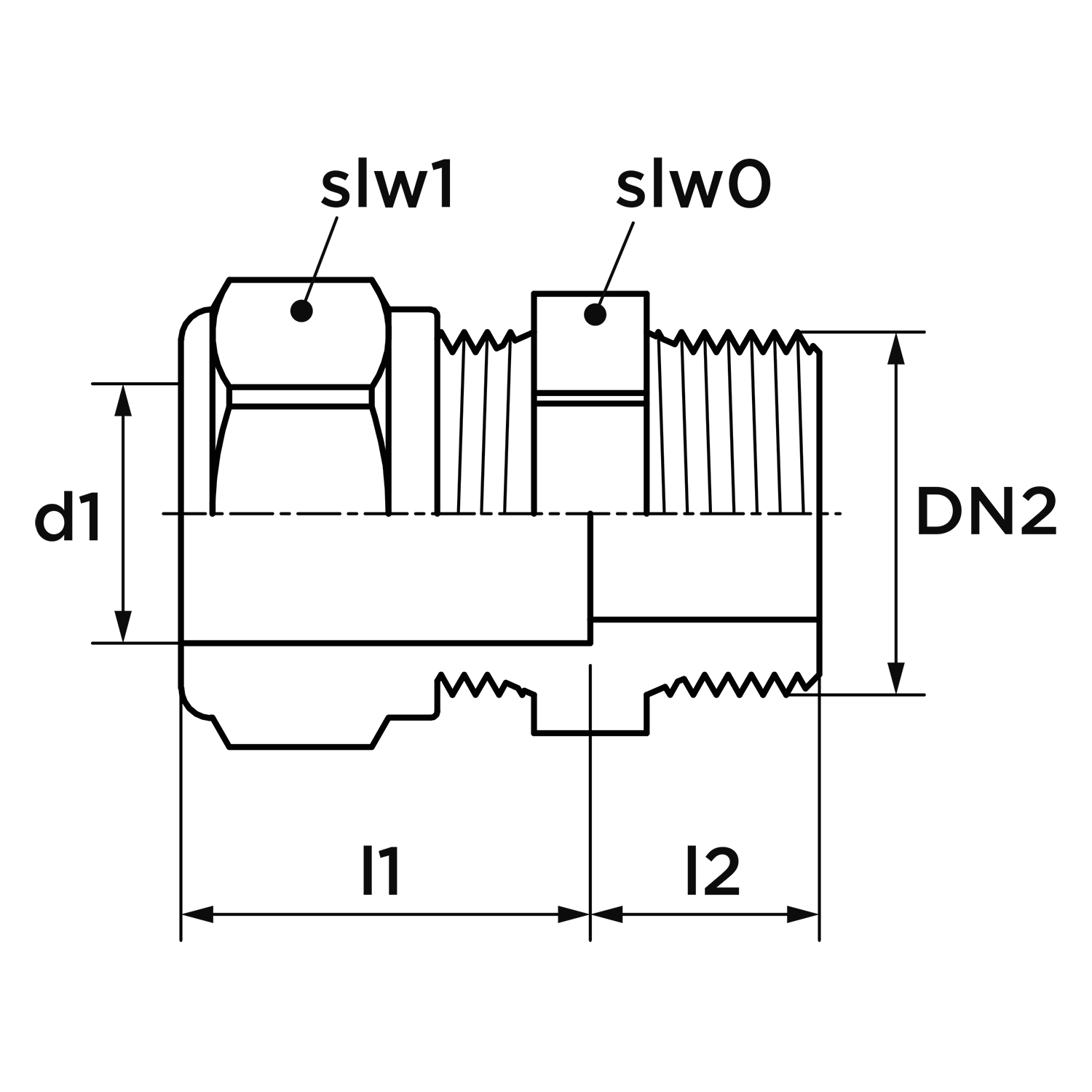 - Werkende lengte aansluiting 1: 15 mm