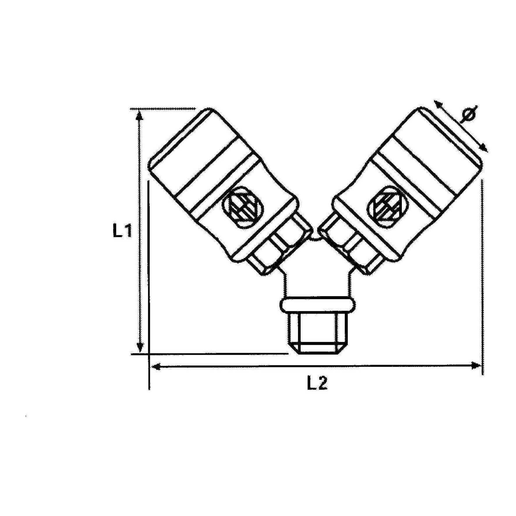 Y-stuk met 2 veiligheidskoppelingen perslucht 1/2"bt.dr. REHAU