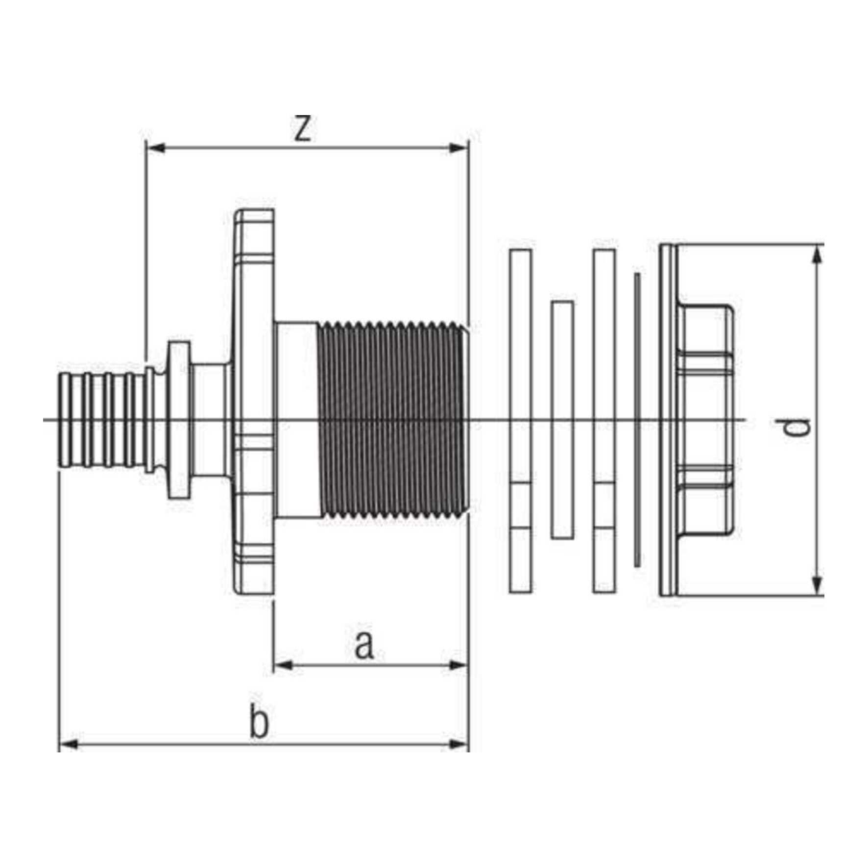 Wanddoorvoer recht RAUTITAN RX+ 16x1/2"bn.dr. l=28mm VVE=10 REHAU