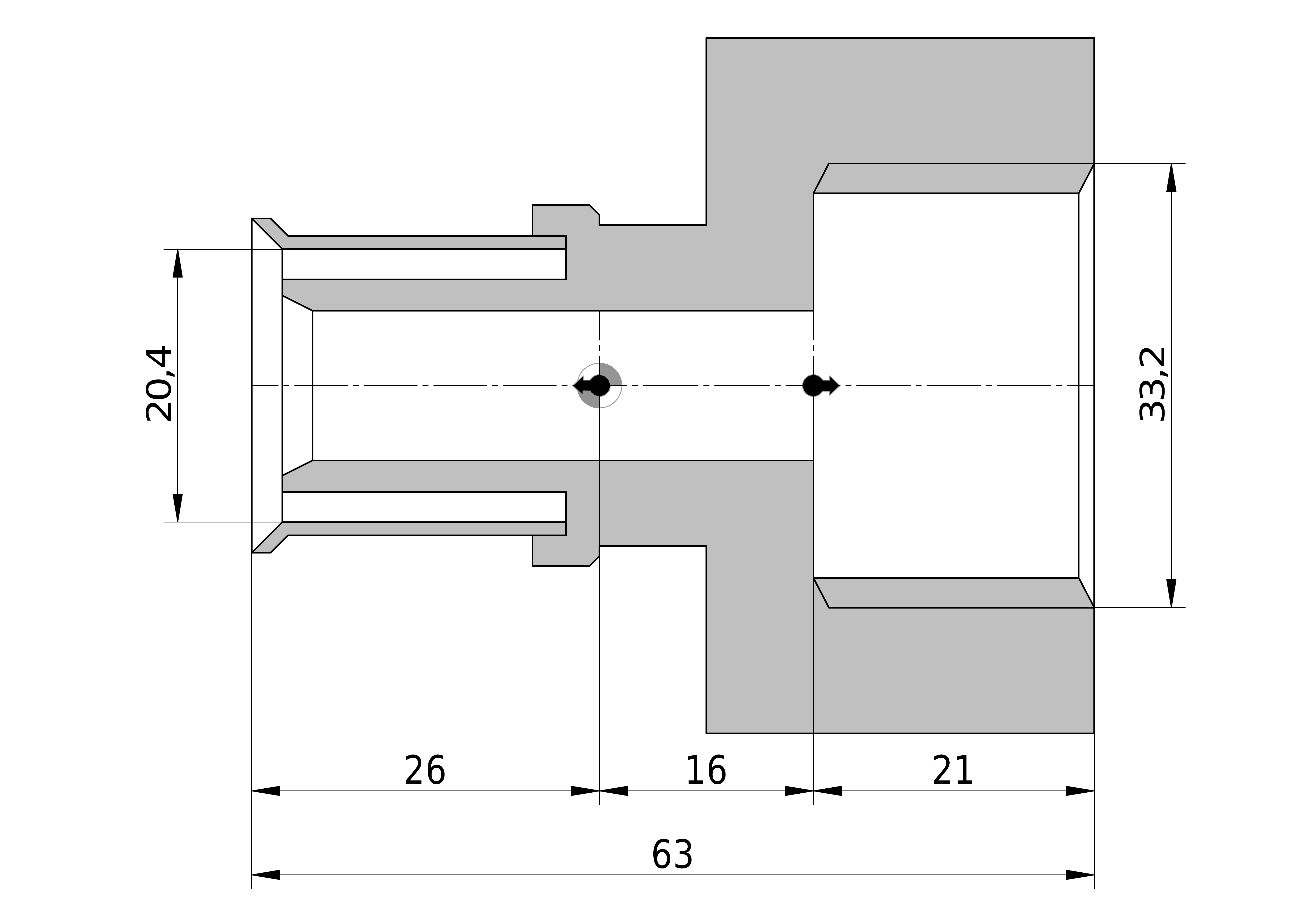- Lengte aansluiting 2: 29 mm