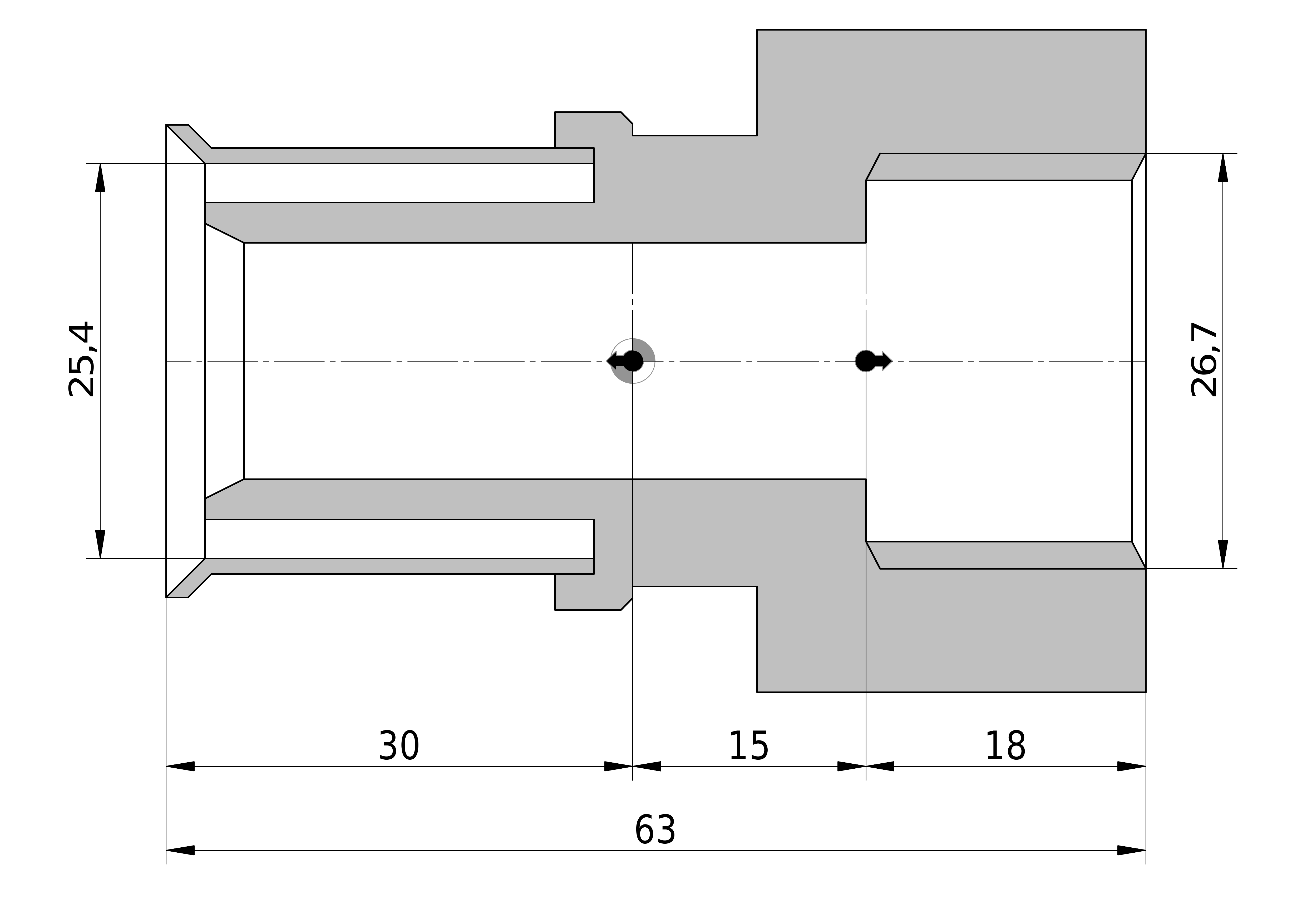 - Lengte aansluiting 2: 26 mm