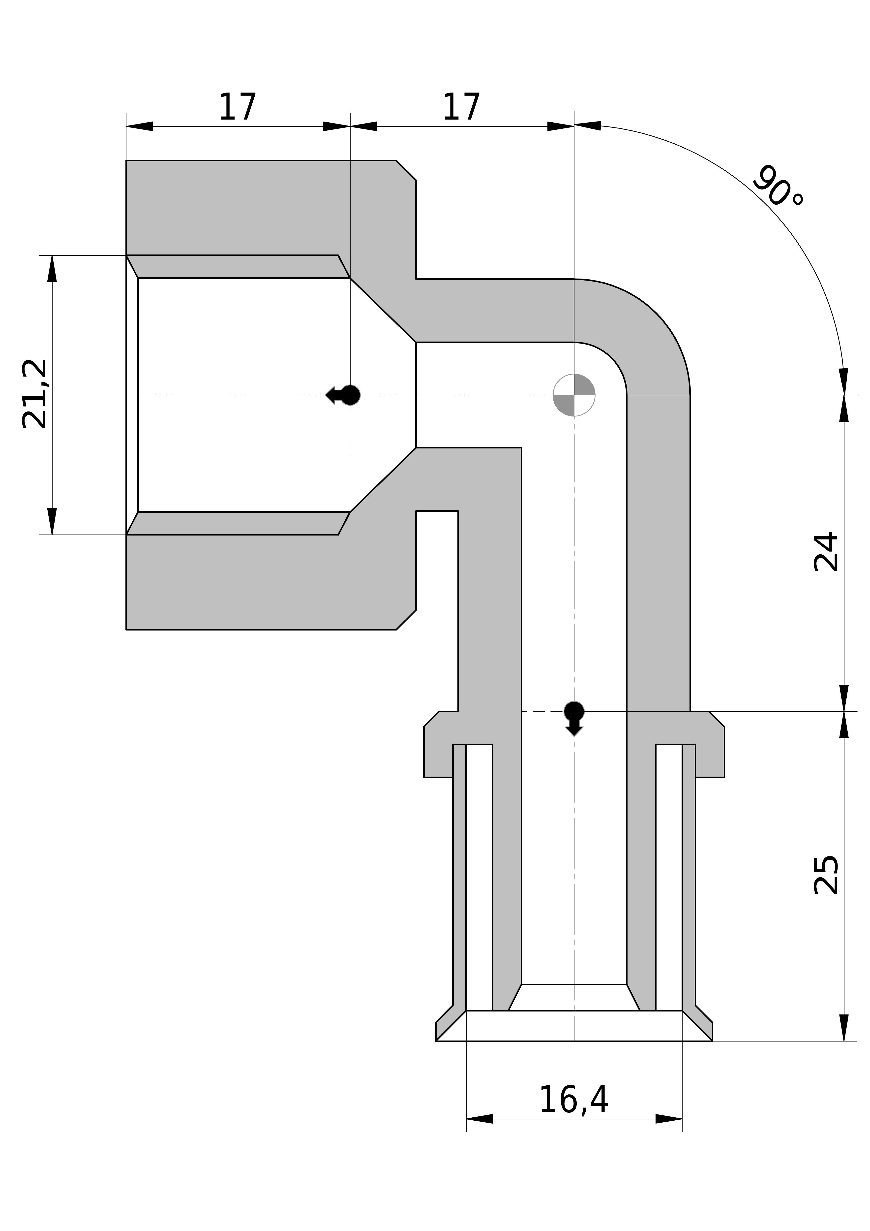 • Bochthoek: 90 °