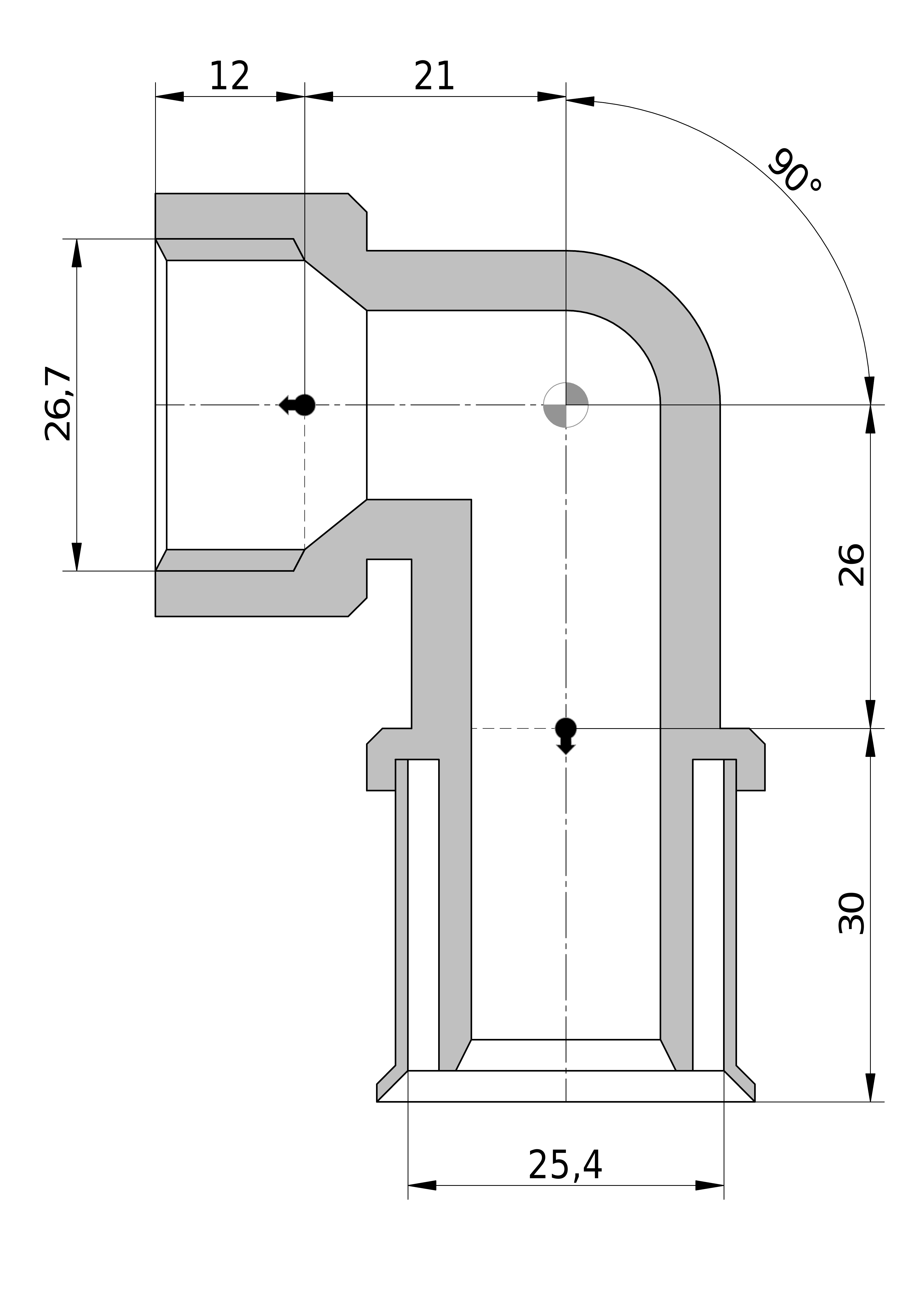 - Uitwendige buisdiameter aansluiting 2: 26,7 mm