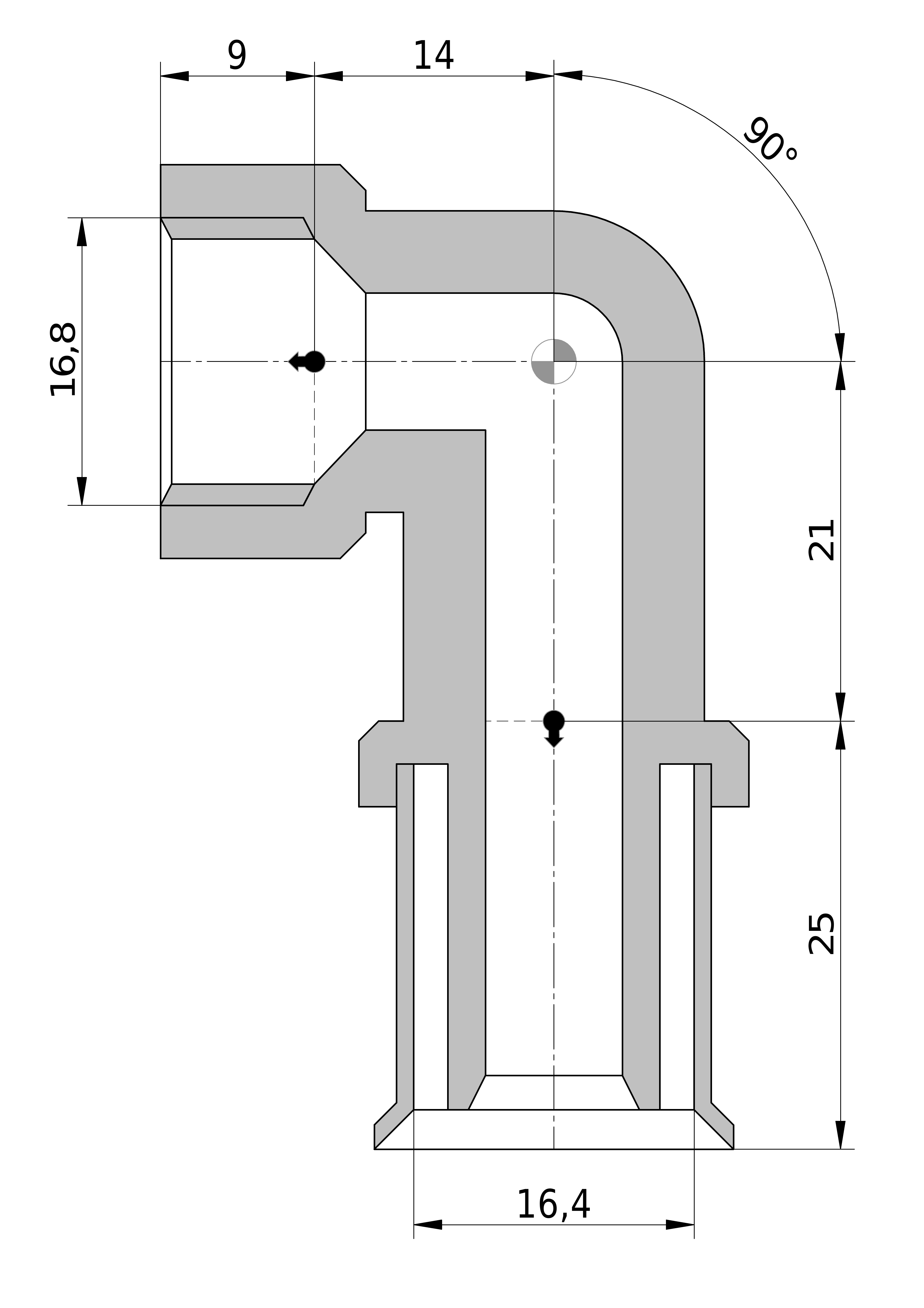 - Lengte aansluiting 1: 25,5 mm