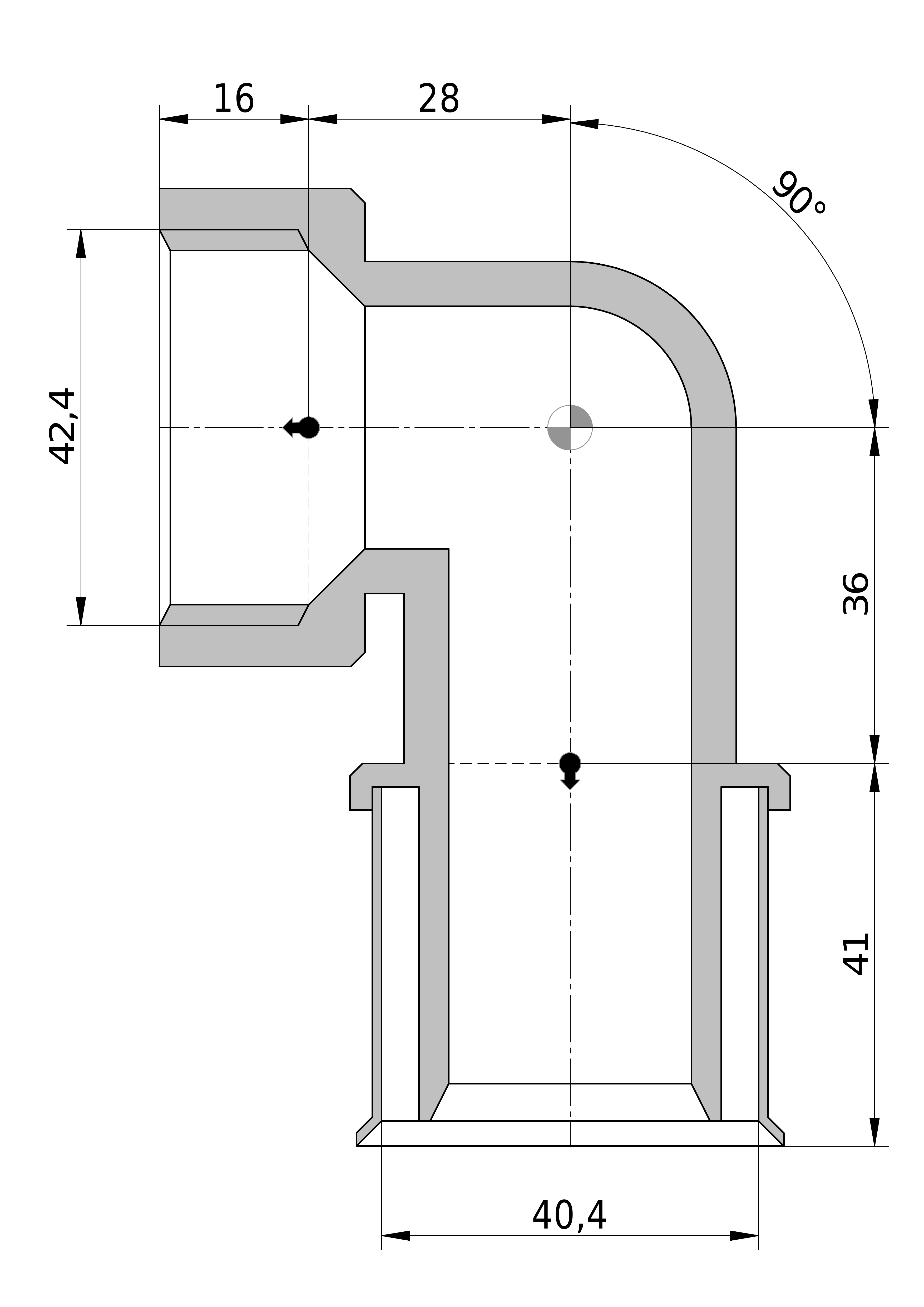 - Lengte aansluiting 1: 41,5 mm