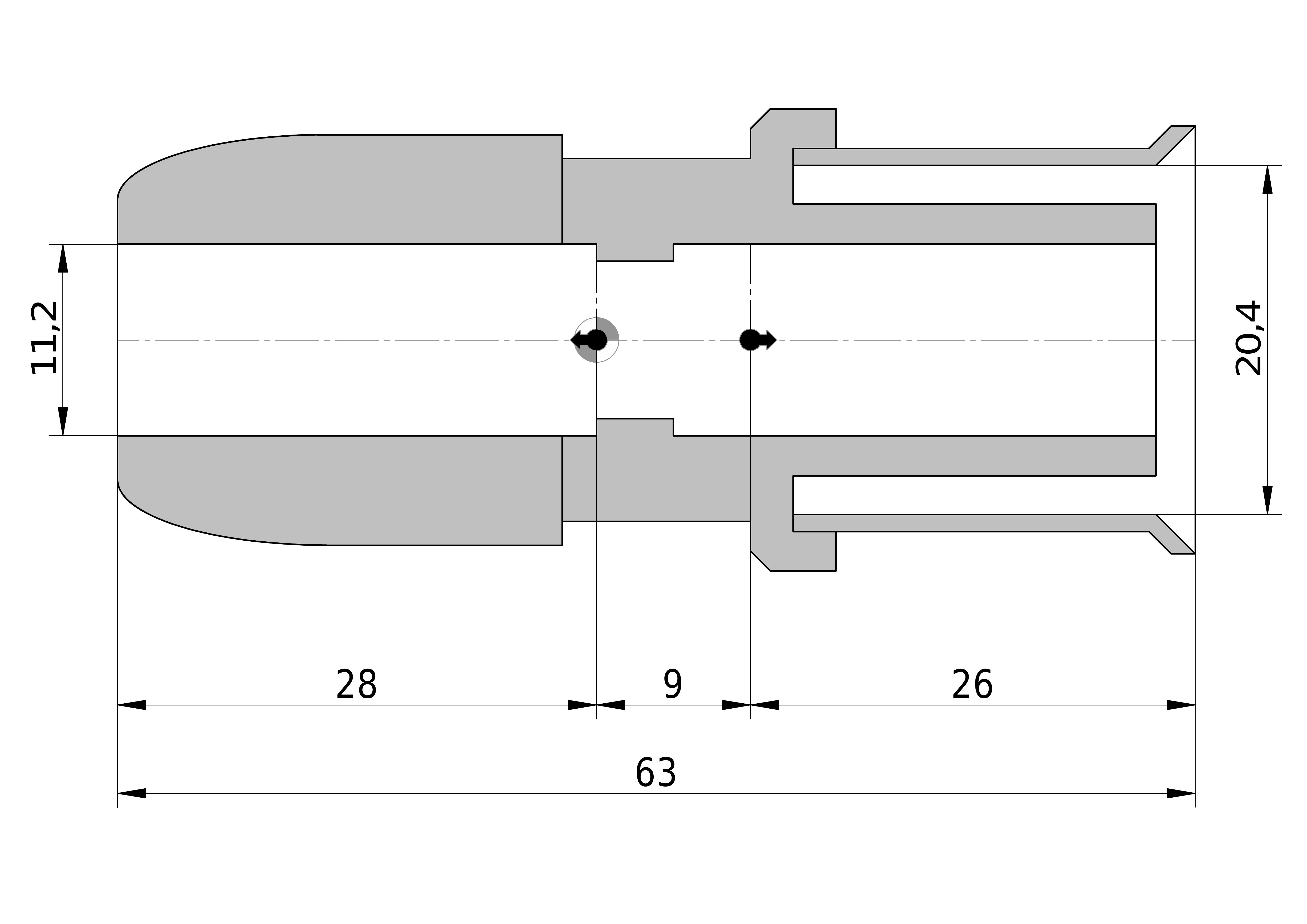 • Lengte aansluiting 2: 25,5 mm