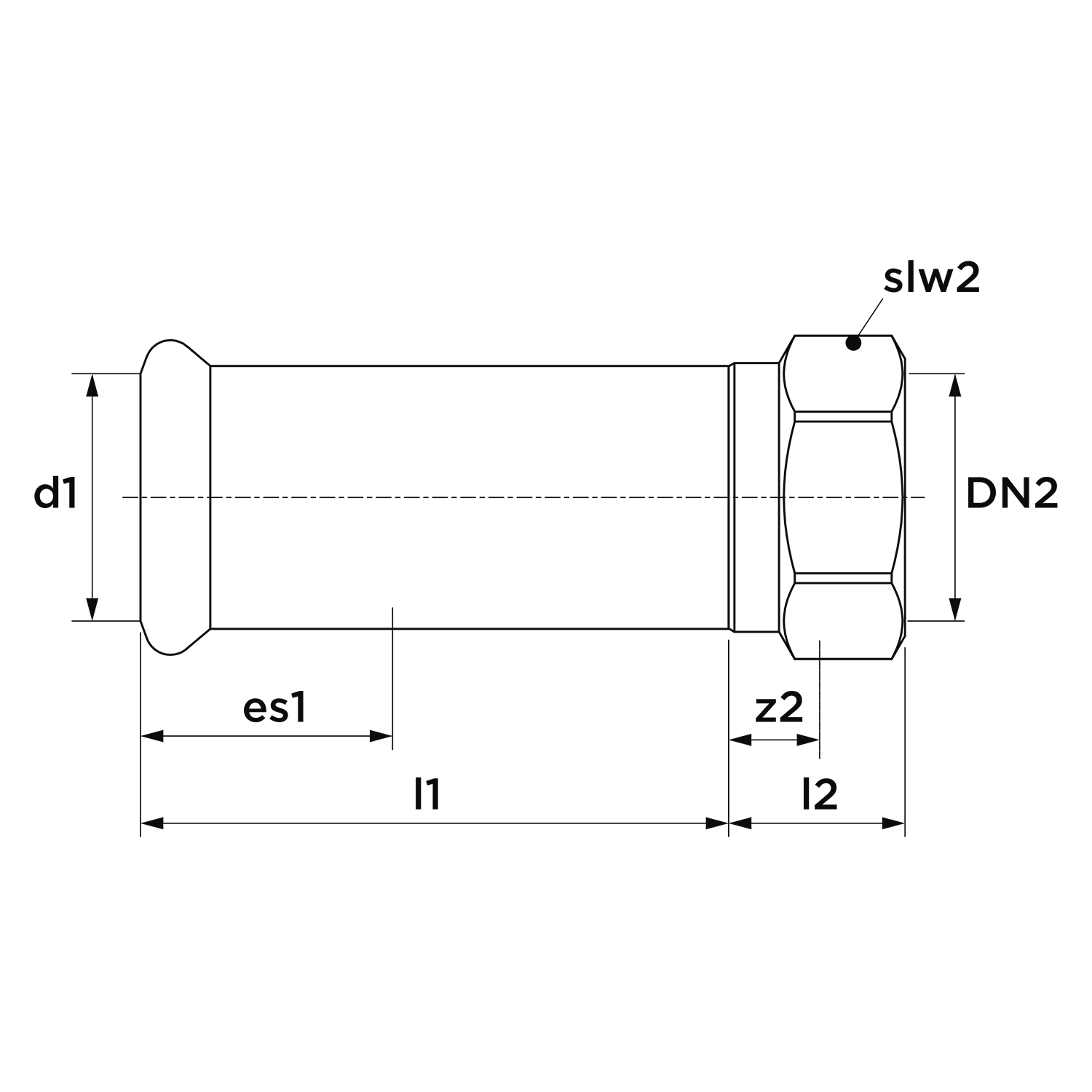 - Uitwendige buisdiameter aansluiting 1: 22 mm