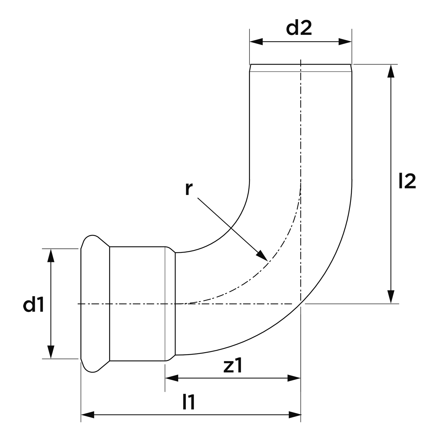 Insteekbocht 90° Xpress RVS gas 42x spie 42mm R2711G VSH