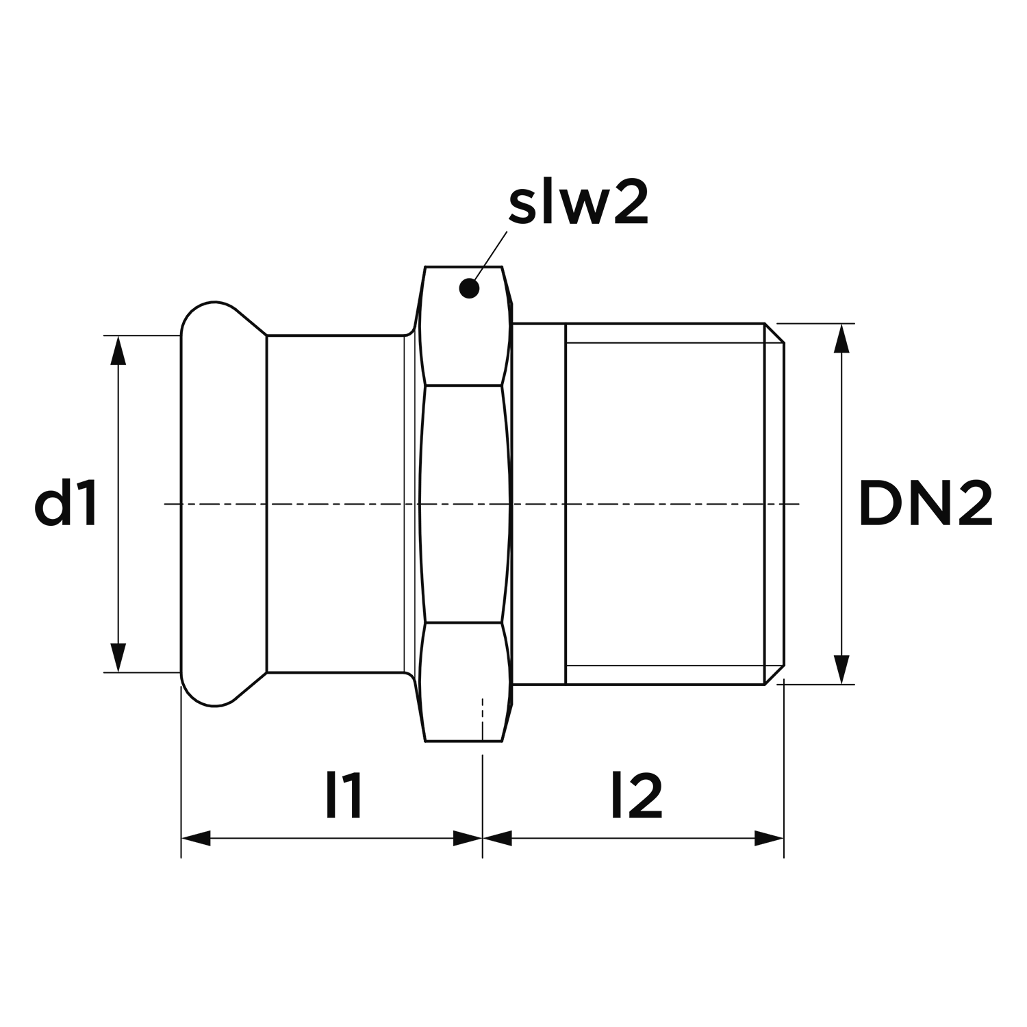 - Aansluiting 2: Buitendraad conisch BSPT-R (ISO 7-1 / EN 10226-1)