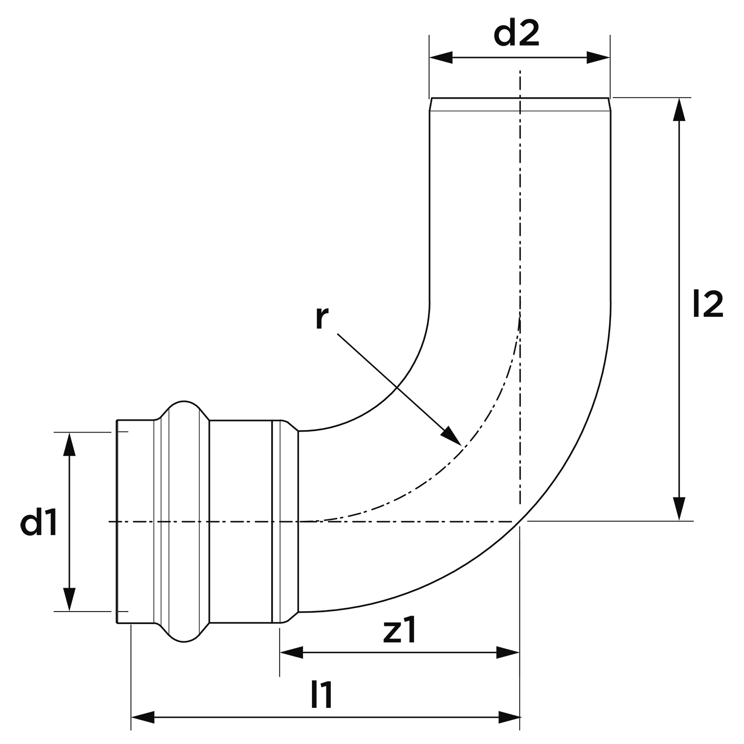 Insteekbocht 90° SudoPress staalverzinkt pers x spie 42x42mm SP8001V VSH