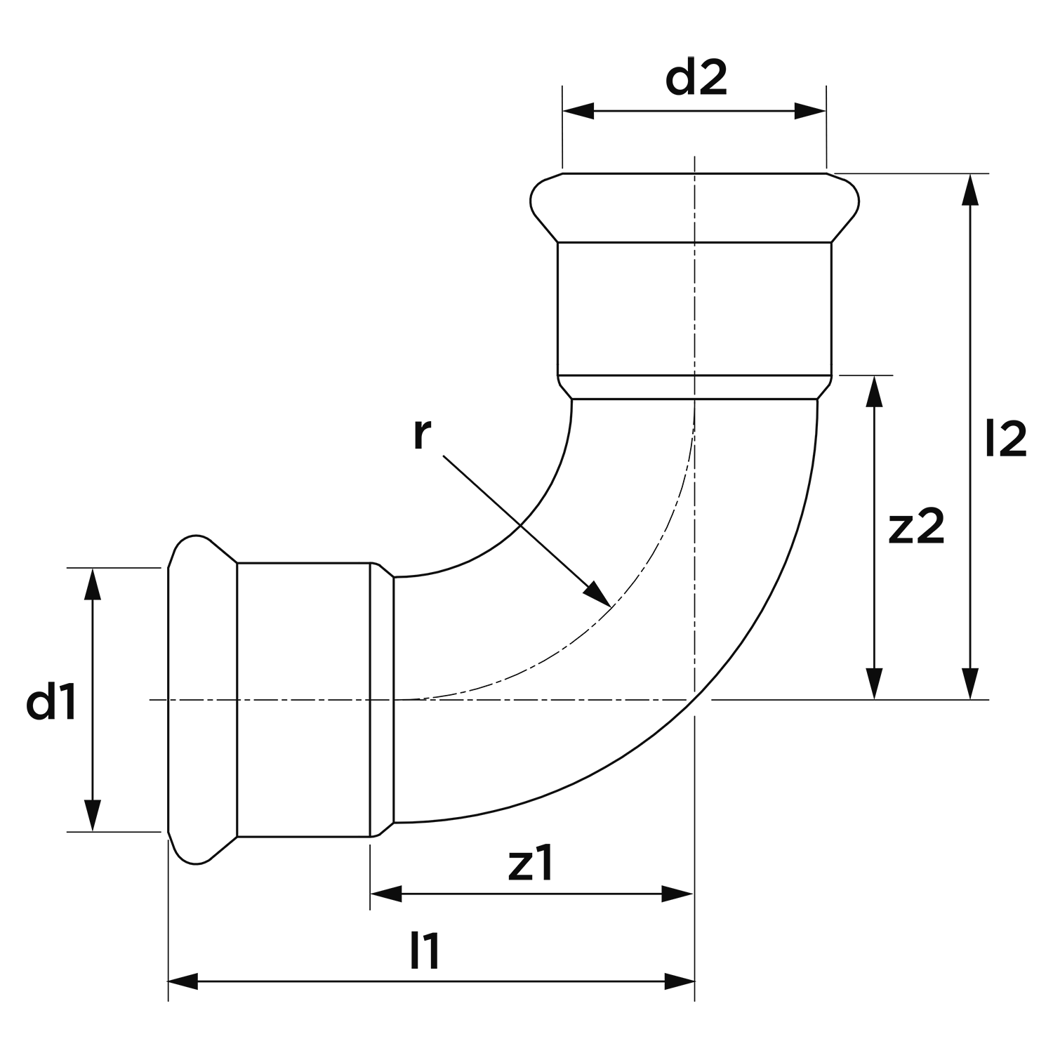 Bochtkoppeling 90° SudoPress staalverzinkt FF 108x108mm SP8002VM VVE=2 VSH