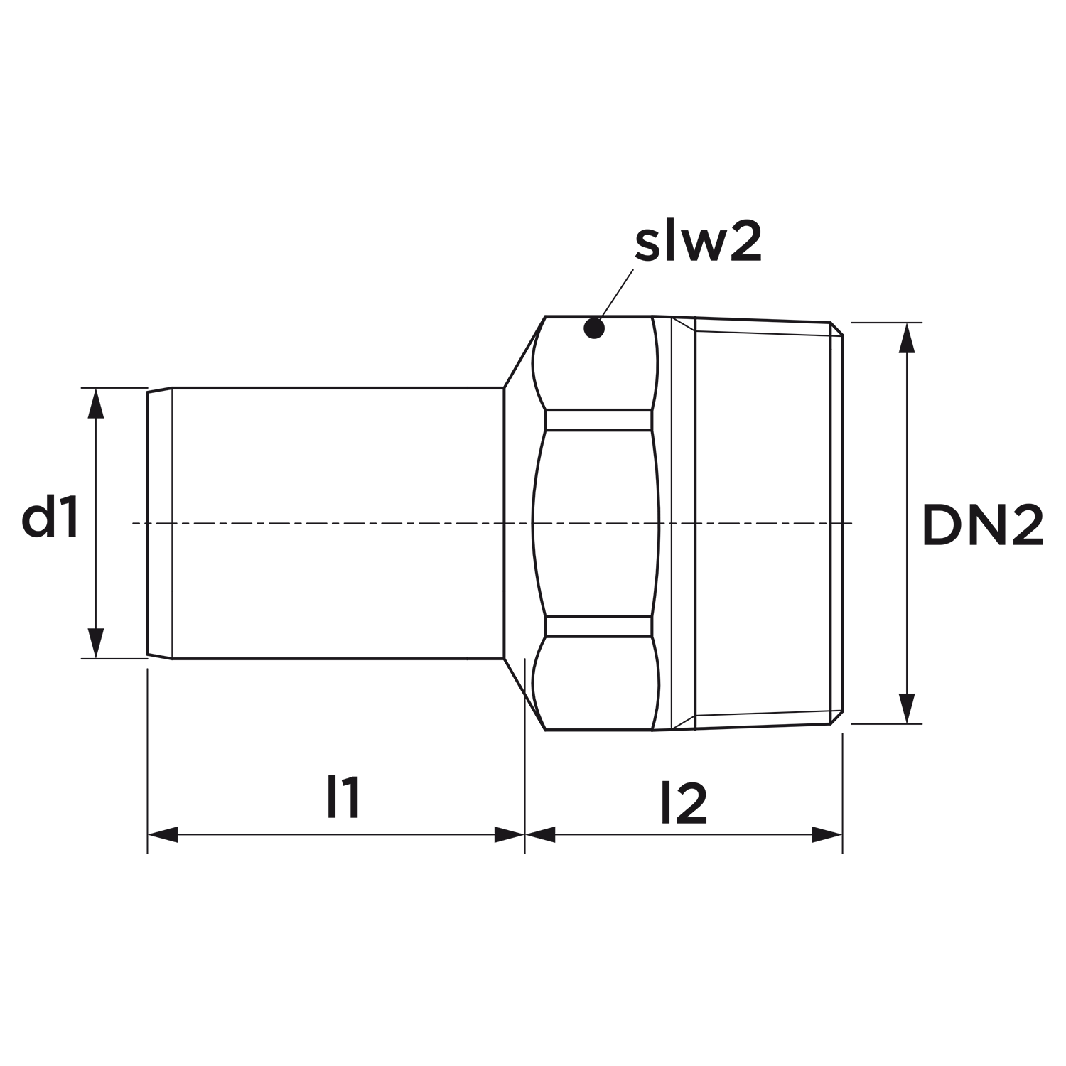- Uitwendige buisdiameter aansluiting 2: 33,7 mm