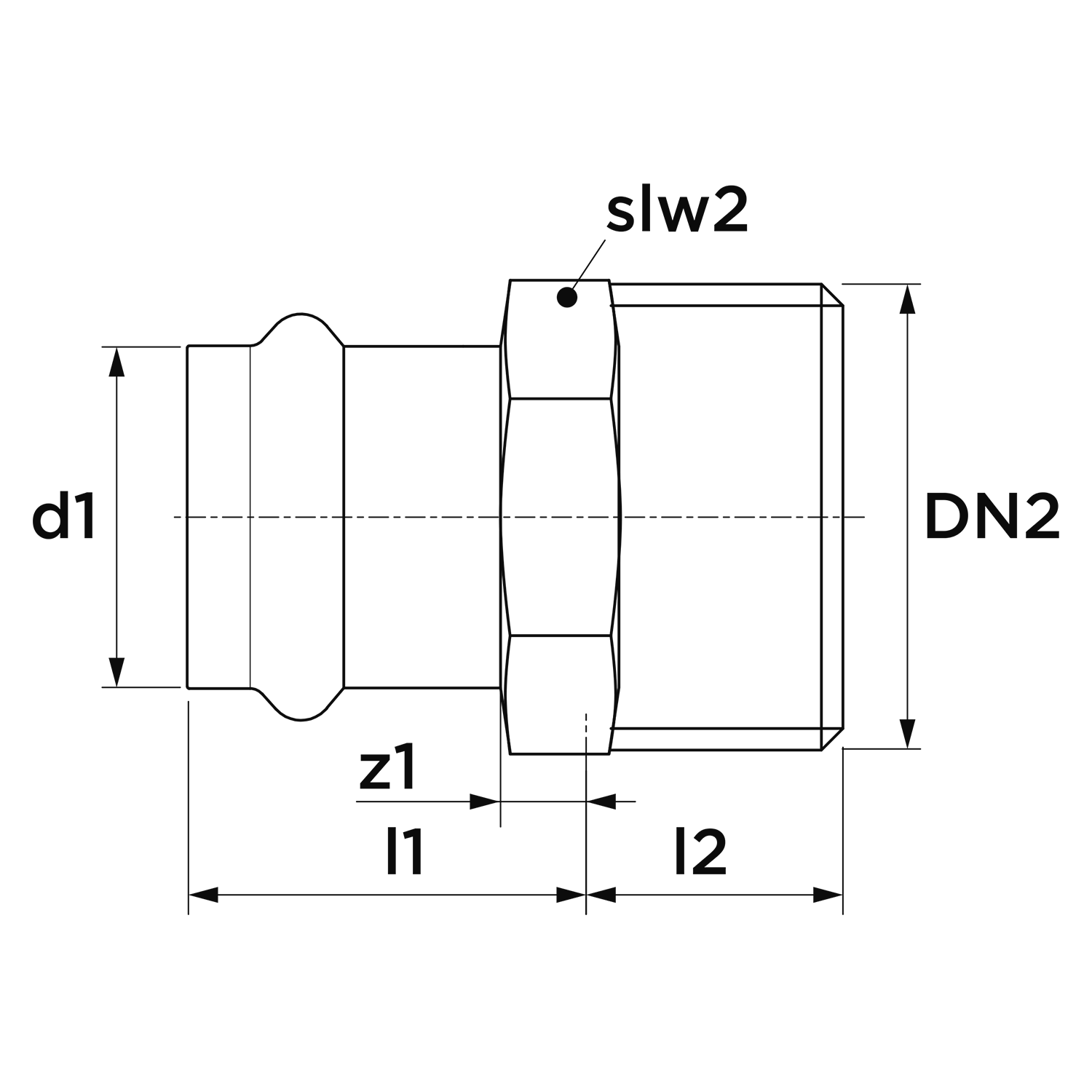 - Aansluiting 2: Buitendraad conisch BSPT-R (ISO 7-1 / EN 10226-1)
