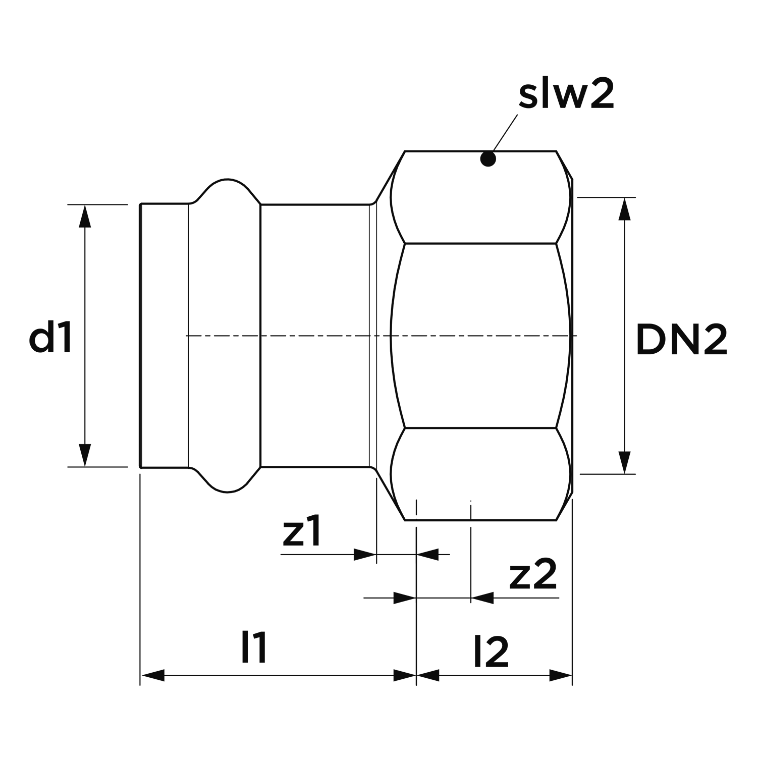 • Uitwendige buisdiameter aansluiting 1: 42 mm