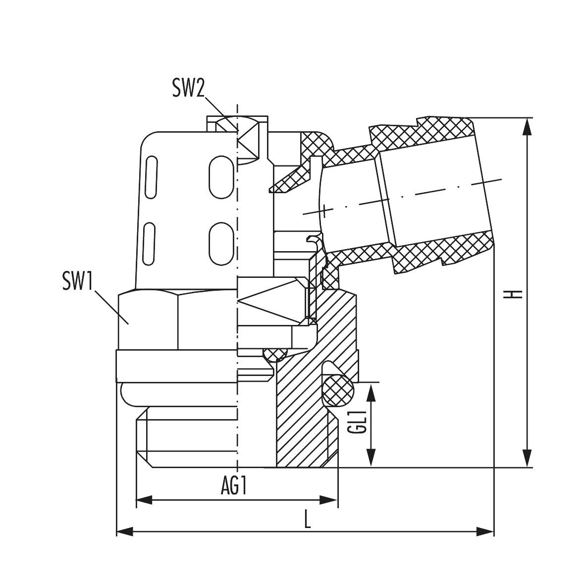 - Aansluiting 1: Buitendraad metrisch