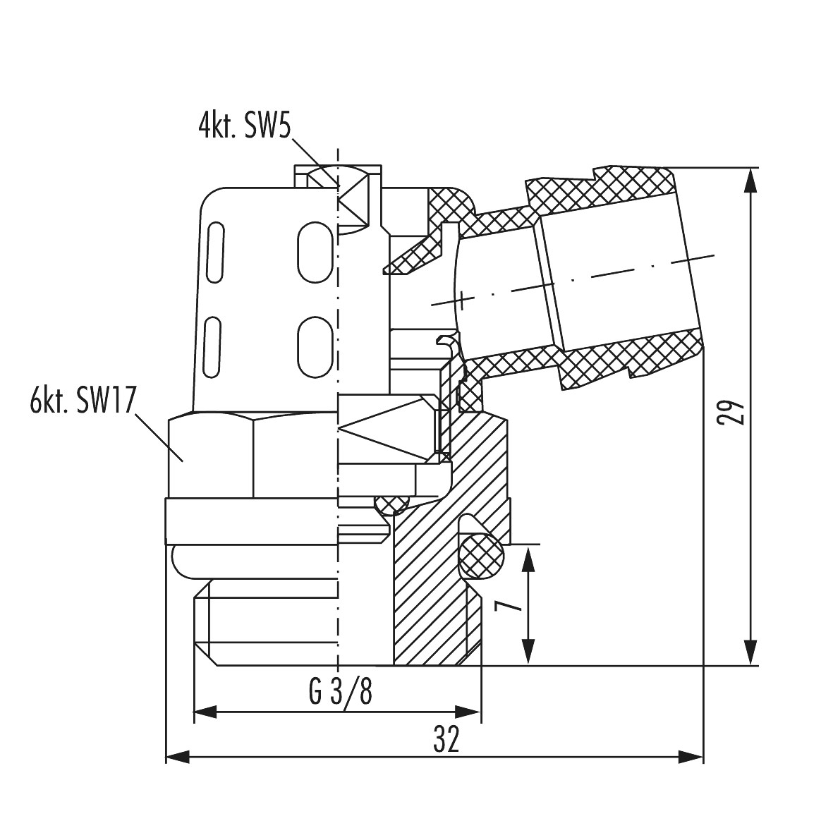 - Nom. diameter aansluiting 1: 3/8" (10)