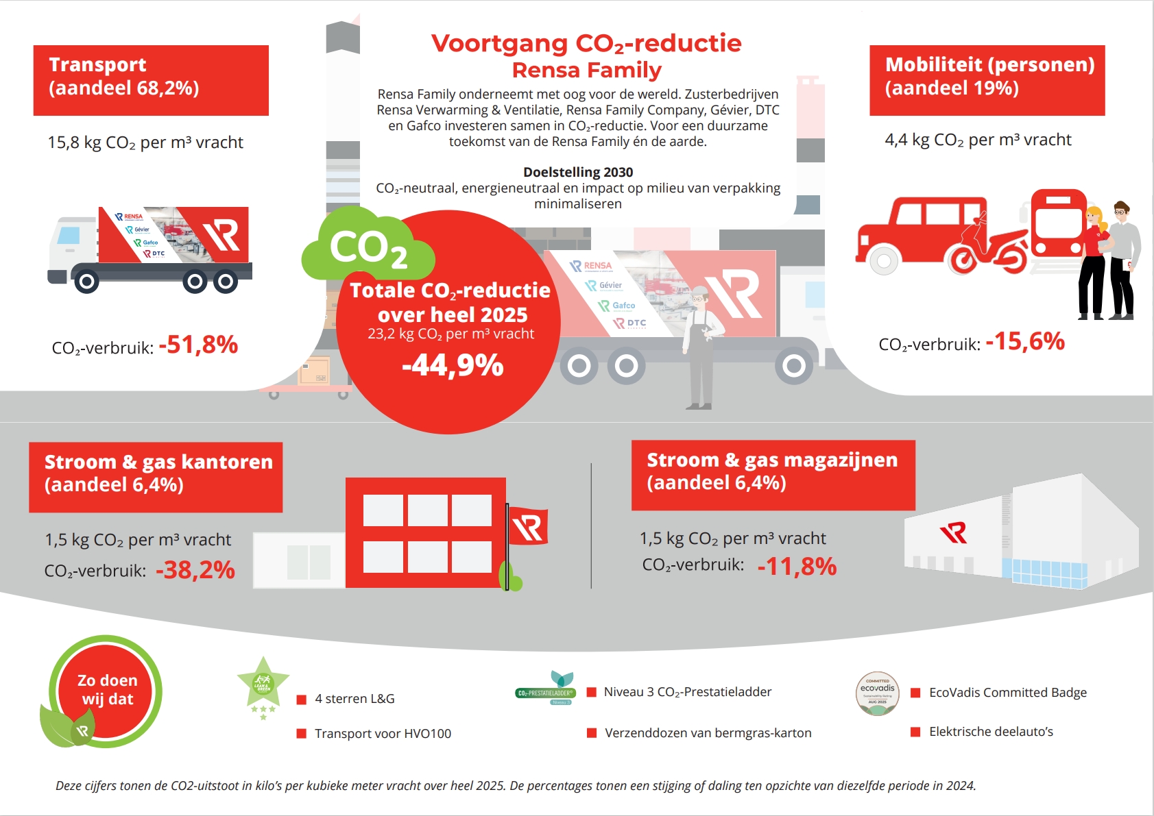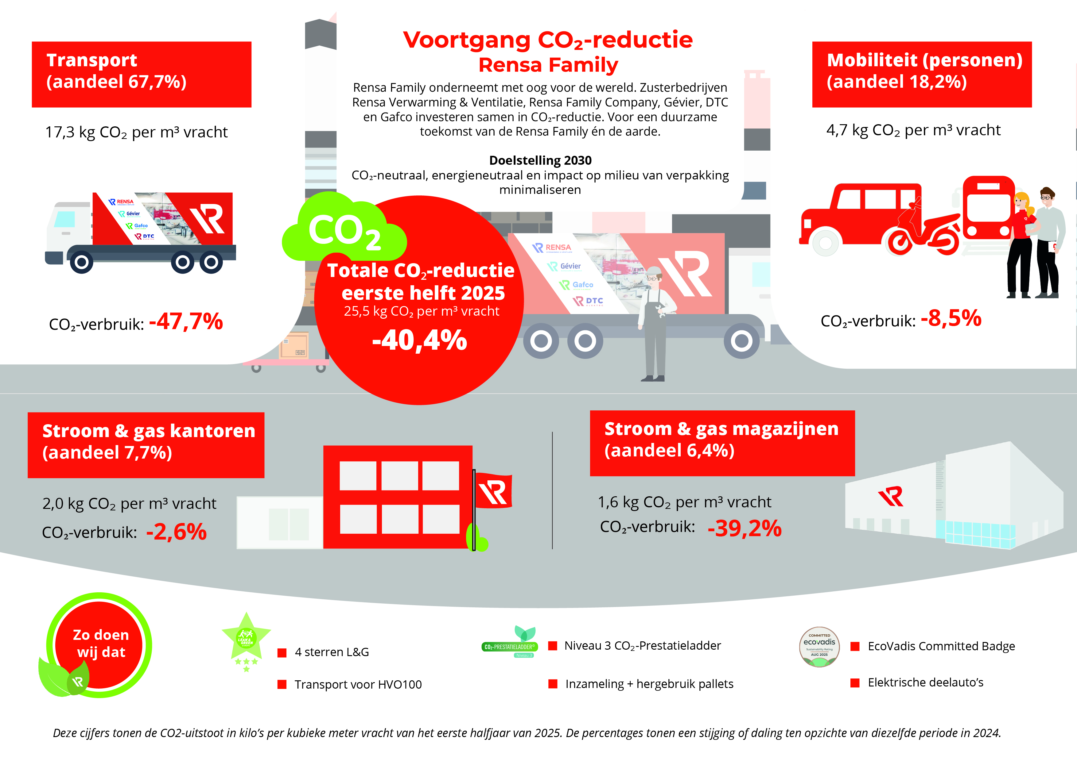 Bekijk in onderstaande infographic onze CO2-reductie in de eerste helft van 2025 ten opzichte van de cijfers van diezelfde periode in 2024. Klik op de infographic voor een volledige weergave.