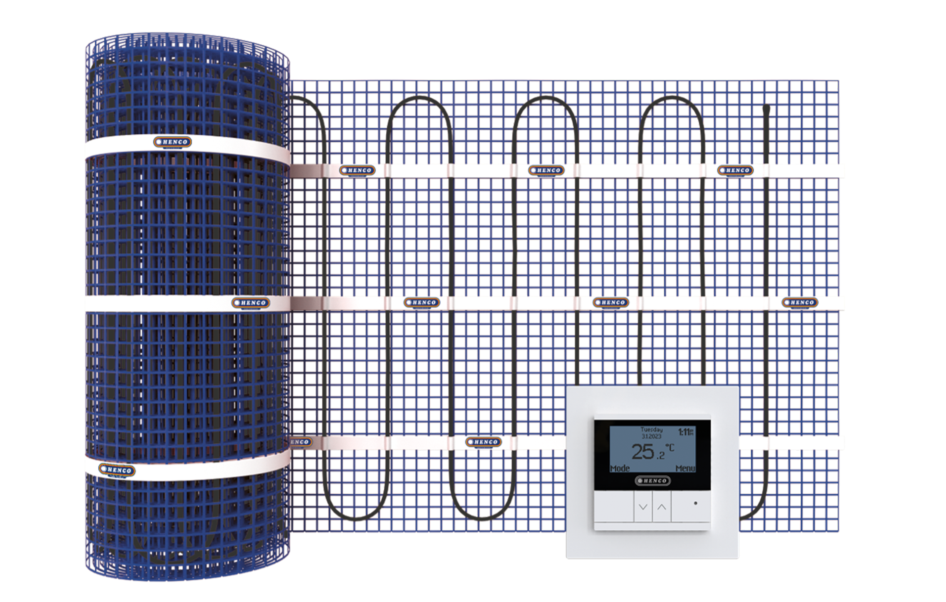 De thermostaat stuurt de ultradunne elektrische vloerverwarmingsmat van slechts 4 mm dik aan (UFH-ELEC), die eenvoudig kan worden geplaatst op bestaande vloeren. Dit maakt het systeem ideaal voor renovatieprojecten of ruimtes met beperkte installatiehoogte. Bovendien houdt het systeem rekening met de specifieke behoeften van hout- en laminaatvloeren, door de temperatuur onder de 28°C te houden.