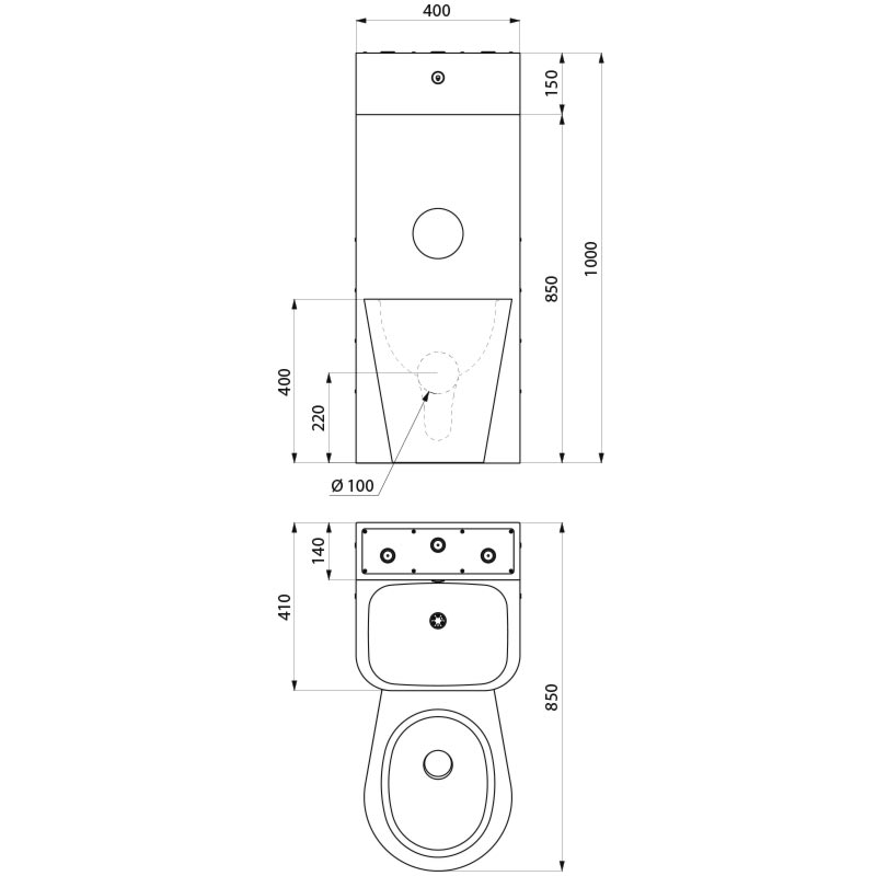 Combinatie wastafel+staand closet Combi KOMPACT WW/KW gecentreerd RVS 304 mat Delabie