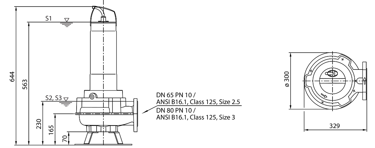 - Nom. diameter aansluiting uitlaatzijde: DN 65