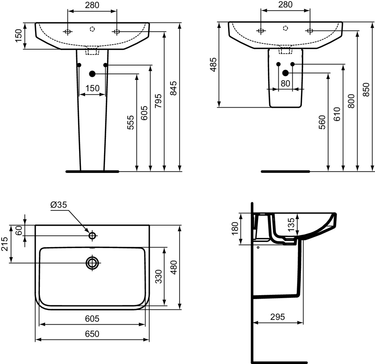 - Hartmaat boutgaten: 280 - 280 mm