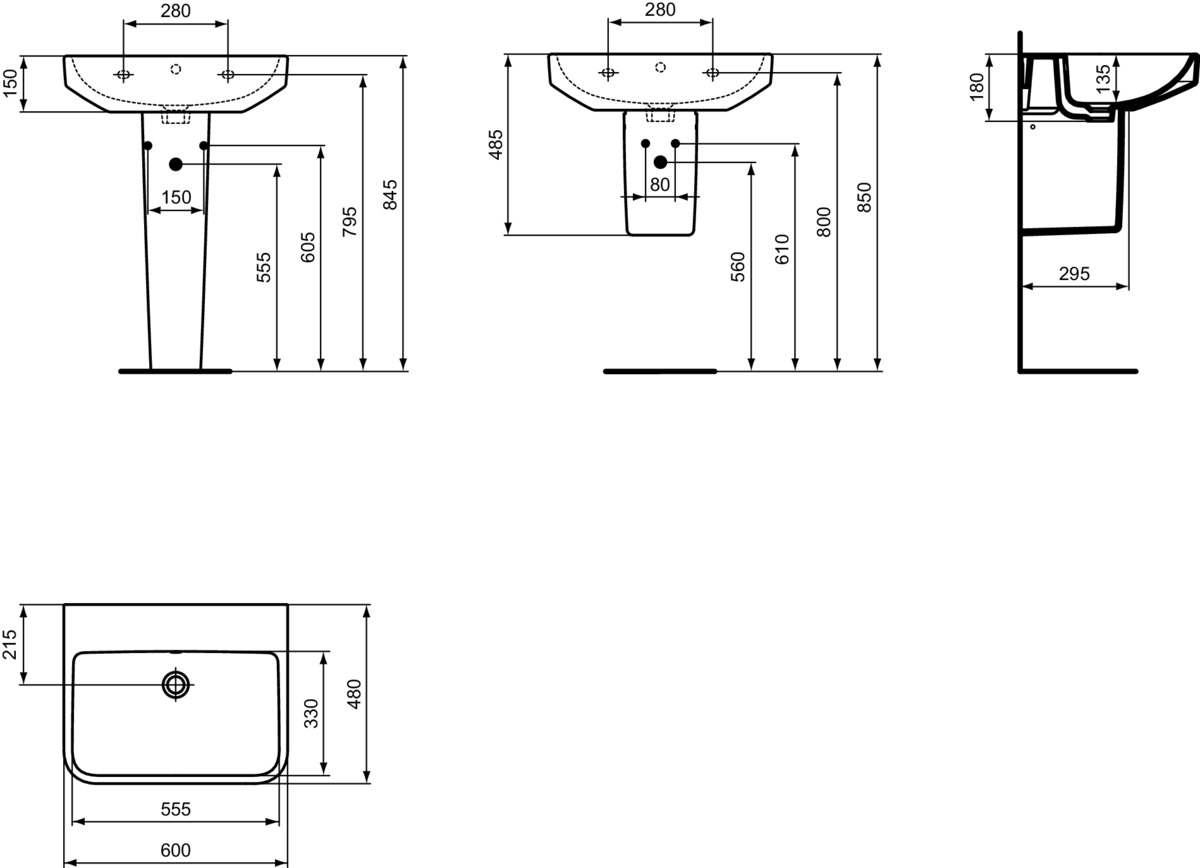 Wastafel 600x480x180mm z. kraangat m. overloop gl wit sg i.life b Ideal Standard