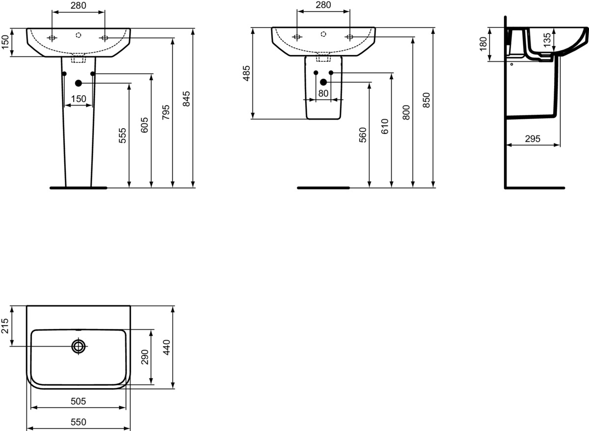 Wastafel 550x440x180mm z. kraangat m. overloop gl wit sg i.life b Ideal Standard